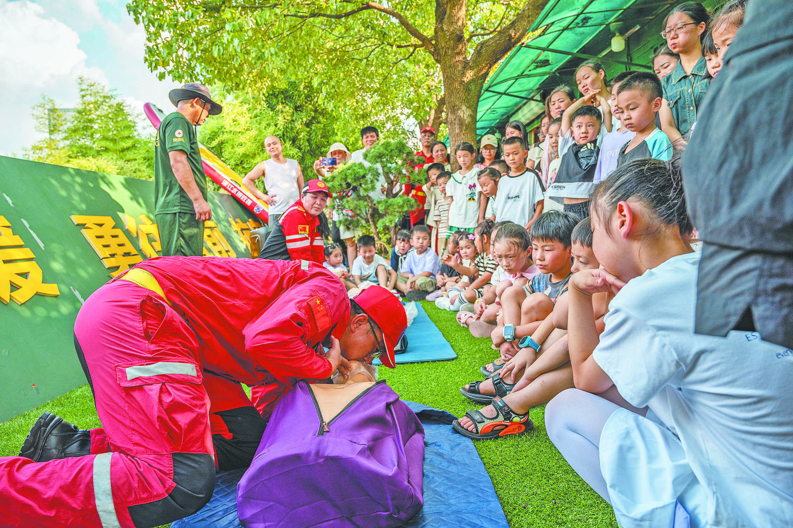 活動(dòng)分防溺水安全知識(shí)講解、落水自救技能、施救技能培訓(xùn)(心肺復(fù)蘇)三個(gè)階段進(jìn)行,讓外來務(wù)工子女在寓教于樂中,進(jìn)一步增強(qiáng)防溺水安全意識(shí)。