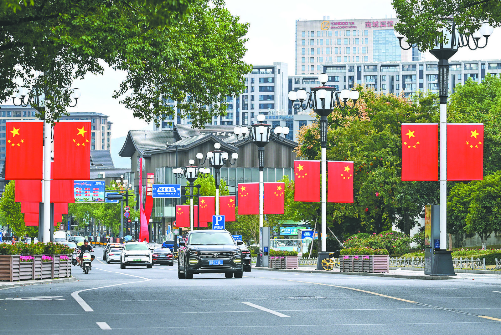 昨日,在我市縣前街及多條主干道,換上了節(jié)日的盛裝,一面面鮮艷的五星紅旗在街頭迎風招展,匯成一片絢麗的“中國紅”海洋,整座城市都沉浸在了熱烈、莊嚴而喜慶的節(jié)日氛圍之中。