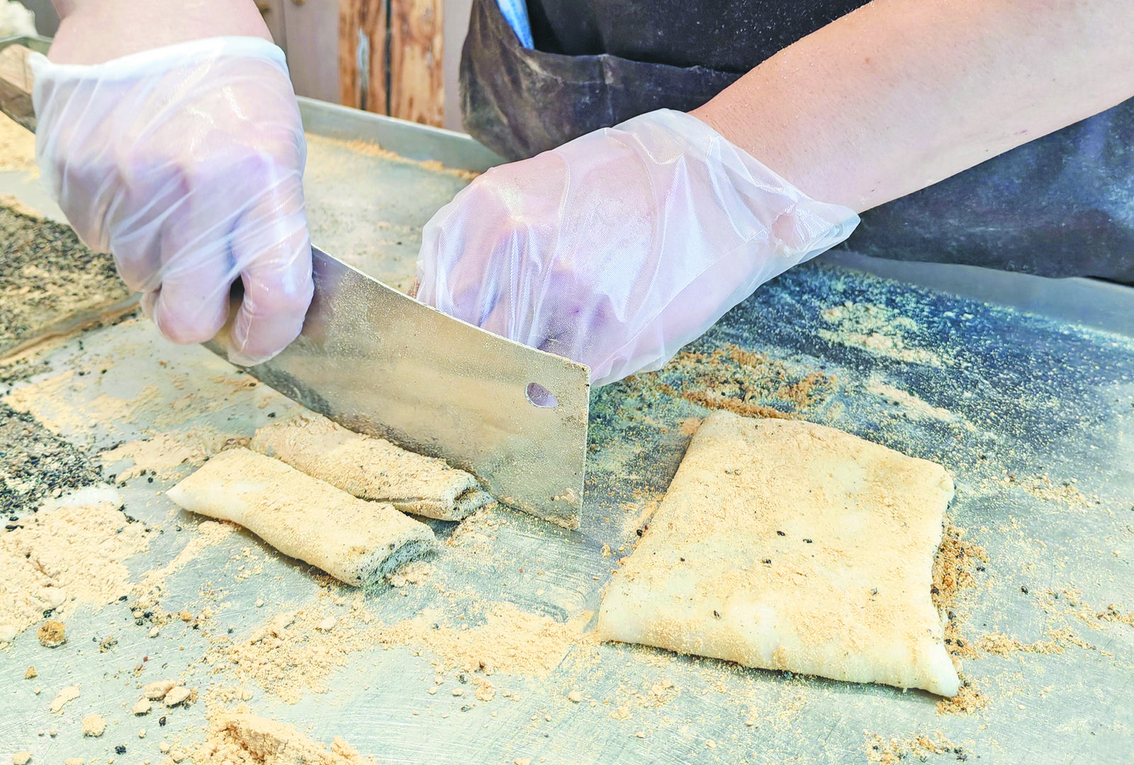 傍晚時分,行走在佛堂老街的青石板路上,沿街的鋪子里飄出各種誘人的味道。但要說哪一味更讓人著迷,錢晨記里的那股糯米甜香可以算上一個。這家藏在老街里的麻糍店,用四代人的手工堅守,把義烏麻糍的老味道揉進一錘一臼的悠長歲月里。 一口手工麻糍 留存義烏老味道 走進老街的錢晨記店鋪,店內的裝修簡單而質樸,墻角的老石臼還帶著剛捶打完麻糍的余溫,粗壯的木杵斜倚在石臼邊,杵上沾著未干的糯米漿,散發(fā)出淡淡的米香。 后廚里,錢晨記第四代傳人錢威正忙得滿頭大汗!白雎轸倏墒莻細致活,每一步都不能馬虎!卞X威一邊忙著手上的活,一邊和記者聊了起來。他告訴記者,制作手工麻糍,首先要挑選優(yōu)質的糯米,這樣做出來的麻糍才會口感軟糯。 挑選好的糯米要提前用清水浸泡,浸泡時間也有講究。夏天天氣比較熱,浸泡四五個小時就夠了。到了冬天,天氣變冷了,則需要浸泡八九個小時,直到糯米吸足水分,用手指一捏就能捏碎,才算合格。 浸泡好的糯米,要瀝干水分后均勻鋪到蒸籠里。蒸糯米的火候至關重要,先用大火將水燒開,然后轉小火慢慢蒸!盎鹛螅疵兹菀淄鈱邮炝死锩孢是生的;火太小,又會導致糯米蒸得太爛。”錢威邊說邊掀開蒸籠蓋,一股熱氣瞬間升騰而起。伴隨著濃郁米香,他用筷子挑起幾粒糯米,仔細觀察,“你看,差不多這樣就可以了”。 將蒸好的糯米倒入老石臼中,接下來就是最費力也最關鍵的捶打環(huán)節(jié)。錢威拿起木杵,開始反復捶打糯米。木杵的重量不輕,每一次捶打都需要耗費不小的力氣。捶打的過程中,還要不時地用沾了水的手將石臼邊緣的糯米刮下來,再繼續(xù)捶打,確保每一粒糯米都被充分捶打均勻!按反虻牧Χ群皖l率都有講究,力度要適中,頻率要均勻,這樣才能讓糯米產生足夠的黏性,做出的麻糍才會柔而不爛、韌而不硬!卞X威解釋。 經過半個多小時的捶打,原本松散的糯米逐漸變成細膩軟糯的麻糍團。錢威將麻糍團從石臼中取出,放在鋪著熟黃豆粉的案板上,用手揉搓成餅,再切成大小均勻的長條。做好的麻糍散發(fā)著誘人的香氣,咬上一口,軟糯香甜,帶著淡淡的米香,讓人回味無窮。 錢威說,在義烏,麻糍從來都不只是一種普通的零食,它承載著本地民俗文化和人們對美好生活的向往。過去,逢年過節(jié),家家戶戶都會制作麻糍,寓意團團圓圓、平安幸福;家里有喜事,比如結婚、喬遷等,也少不了麻糍的影子,象征吉祥如意。 錢晨記的麻糍,一直堅守著這份老講究。錢威家的麻糍沒有花哨的餡料,只有傳統(tǒng)的紅糖、芝麻、黃豆粉三種。將切好的麻糍塊滾上一層紅糖,甜而不膩;撒上一些芝麻,香氣四溢;沾上一層黃豆粉,口感醇厚。簡單的搭配,卻將糯米本身的清甜襯托得恰到好處。 四代人的堅守 從“謀生技”到“非遺魂” 錢晨記的麻糍手藝,要從錢威的太爺爺說起。為了養(yǎng)家糊口,錢威的太爺爺挑起一副擔子,擔子里裝著小小的石臼、糯米和各種工具,手里拿著梆子,走街串巷售賣麻糍。 “梆、梆、梆”,清脆的梆子聲在大街小巷回蕩,吸引著人們的注意。每當聽到梆子聲,孩子們總會迫不及待地跑到門口,圍著錢威太爺爺?shù)膿,眼里滿是期待。拿著父母給的零錢,買一塊熱乎乎的麻糍,是孩子們心中珍貴的回憶。 傳到父親錢有良這一代,錢晨記有了固定的鋪面,生意比以前好了不少,不僅有附近的街坊鄰里前來光顧,還有不少外地游客慕名而來。錢有良始終堅守著祖輩父輩們傳下來的手藝,堅持手工制作麻糍,用心做好每一份麻糍。 時光荏苒,轉眼到了2007年,錢威已經20歲了。當時,錢威剛從學校畢業(yè),面臨人生的選擇。是外出打工,還是回家繼承父親的麻糍手藝,錢威猶豫了很久!耙婚_始,我確實不太愿意做這行,做麻糍又累又辛苦,而且年輕人都想出去闖一闖!卞X威坦言。可是,看著父親錢有良日漸蒼老的身影,還有店里那些熟悉的老顧客期盼的眼神,錢威最終還是下定決心,回到錢晨記,跟著父親學習麻糍制作技藝,成為第四代傳人。 剛開始學習制作麻糍的時候,錢威吃了不少苦。木杵比他想象中重得多,每天要捶打幾十斤糯米,不到半天,他的胳膊就酸得抬不起來。而且,捶打麻糍不僅需要力氣,還需要技巧,力道掌控不好,做出的麻糍口感就會差很多。好幾次,錢威因為太累,想要放棄,可是每當看到父親鼓勵的眼神,還有老顧客們吃完麻糍后滿意的笑容,他又咬牙堅持了下來。 “記得有一次,一位老奶奶帶著她的孫子來店里買麻糍。老奶奶告訴我,她從小就吃我們家的麻糍,現(xiàn)在帶著孫子來吃,想讓他也嘗嘗這份老味道。當時我特別感動,覺得自己肩上的責任更重了,這門手藝絕對不能在我手里丟了!卞X威笑著說。 如今,錢威已經在錢晨記堅守了十余年。這些年里,他不僅熟練掌握了麻糍制作技藝,還不斷地學習和創(chuàng)新,在保留傳統(tǒng)味道的基礎上,對制作工藝進行了一些改進,讓麻糍口感更加細膩。 “義烏十大傳統(tǒng)美食”“鄉(xiāng)村旅游美食金獎”……錢晨記店鋪的墻上,掛滿了各種榮譽證書,這些證書是對錢家四代人堅守手藝的認可。錢威父親錢有良,也憑借精湛的麻糍制作技藝,成為第四批義烏市非物質文化遺產“義烏麻糍制作技藝”代表性傳承人。但在錢威看來,這些榮譽證書固然珍貴,可最好的證書,卻是顧客們吃完后下次還來的念想。“只要看到顧客吃得開心,聽到他們說‘你家的