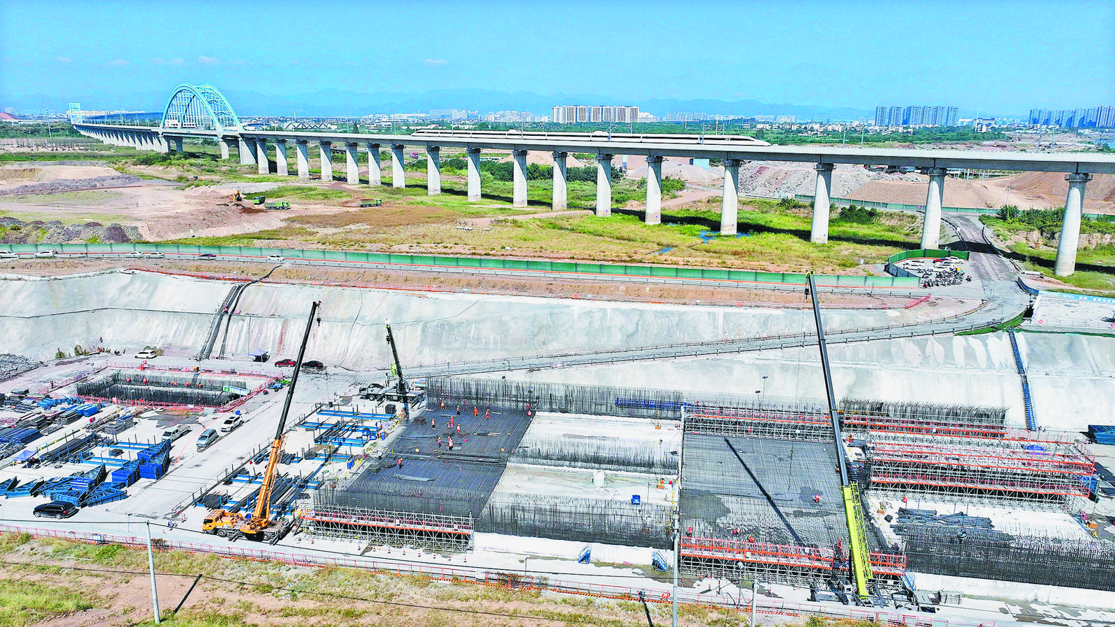 10月11日,甬金高速改擴建工程雙江湖路段土建工程隧道區(qū)段,眾多施工設備和建設人員立體作業(yè)同步進行,首件主體底板施工完成,標志著工程進入主體施工新階段。