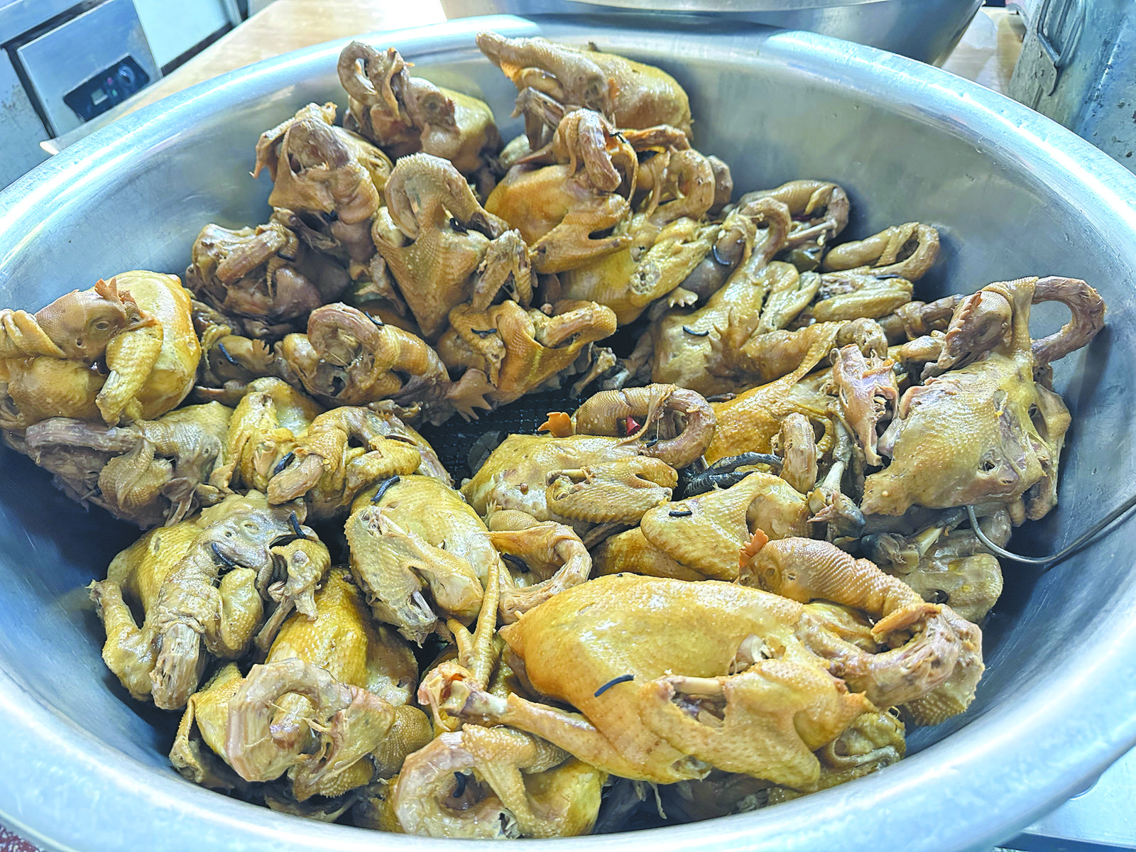 秋日的暖陽穿過街邊的梧桐葉,在柏油馬路上灑下碎金似的光斑,一聲聲市井聲漫過街角,廿三里街道中心街蘇醒了。在這條街上,有一家回頭客眾多的店鋪——廿三里童子雞。 店里的鍋爐冒著騰騰熱氣,熱油裹著新鮮的童子雞翻滾,鹵料的香混著油花“滋滋”作響,成了動聽的樂曲。這是安徽籍經(jīng)營戶楊福好和妻子李芳守了28年的“人間煙火”。 光陰匆匆,廿三里街道發(fā)生了翻天覆地的變化。然而無論如何改變,美食始終是煙火氣的根源。咬一口脆嫩的雞肉,這口獨有的咸香,既是地道的地方風(fēng)味,也藏著楊福好夫婦的一顆煙火匠心。 從路邊攤到門店 28年匠心堅守 廿三里童子雞店一開就是28年。從1997年的路邊攤到如今擁有兩間亮堂的門店,楊福好夫婦的創(chuàng)業(yè)路,藏在每天凌晨5點的新鮮雞肉里,藏在鹵湯咕嚕的熱氣里,也藏在食客的那句“還是老味道”里。 香氣撲鼻的童子雞,以其獨特的風(fēng)味讓食客們大快朵頤,幸福而滿足。每天都有數(shù)百位客人跑到廿三里,光顧這道市井美食。無論是奔走在路上的期待,還是到達目的地后的迫不及待,人們對廿三里童子雞都充滿了渴望。 透過門店的窗口,看到餐桌上的超大不銹鋼盆,里面整齊擺放著鹵制好的童子雞,賣相甚好。剛出爐的童子雞散發(fā)著熱氣,經(jīng)過油炸,焦香的外皮包裹著多汁的雞肉,再加上噴香的蔥花、香菜點綴,一口下去,十分“落胃”! 每天凌晨5點收新鮮雞肉,這是楊福好雷打不動的習(xí)慣。店里選的都是4個月左右的公雞或5個多月的母雞,整體細瘦卻結(jié)實。蹲在灶臺邊擇殘留的雞毛,指尖在雞皮上輕輕一捻,細絨毛簌簌落下,處理得干干凈凈。“每只雞都腿長、肉緊。短粗的肉雞不行,燉出來發(fā)柴!睏罡:谜f。每天,當(dāng)整條街還“浸在”露水氣中,楊福好和妻子、店員早已在后廚一遍遍清洗備用的雞,直至去除血水,放入滾開的鹵湯里。不銹鋼桶里的鹵湯在翻滾,八角、桂皮、香葉等配料在湯里打旋,香味竄出后廚,飄到街上。 “擺路邊攤的時候,一天最多賣十來只雞!睏罡:靡贿叴虬u肉,一邊同記者說。回想起往日擺地攤的時光,他深有感觸,“那時候攤位就在門店前的大樹下,樹影就是‘遮陽棚’!睏罡:谜f。創(chuàng)業(yè)之路,荊棘滿布,也鮮花盛開,他們夫婦倆的初心始終未變,從選材到鹵味,從炸制到出爐,每一天都用心做好每一只童子雞。 成為食客最愛 一天能賣400只雞 走進后廚,灶臺上火光跳躍,兩口不銹鋼大鍋交替輪換。只見楊福好撈起一只鹵好的雞,在案板上“啪”地一拍,雞肉酥軟,肉縫里還滲著琥珀色的鹵汁。選雞、清洗、鹵制、油炸,持續(xù)28年的工序像刻入骨子里的鐘擺。“鹵雞的時候要用文火,燉1小時50分鐘,讓味道滲入肉縫里!彼勉^子輕輕推轉(zhuǎn)雞身,湯汁在雞皮上劃出細密的紋路,自然光線照射下,整只雞雞身透亮。 炸鍋是重頭戲之一。鹵好的雞控干水分,放進180℃至200℃的油鍋里,“滋滋”聲不斷,油花裹著雞皮翻卷,瞬間鼓起金黃的酥泡。迅速翻攪,雞身在空中劃出弧線,油珠像碎鉆似的往下掉!皠傉ǔ龅碾u肉香脆,澆點鹵湯就軟乎,兩種吃法隨你選!庇龅叫骂櫩停瑮罡:每偛煌。 采訪當(dāng)天,正值晴天。正午的陽光斜照進店里,排隊的人漸漸多了起來。戴安全帽的工人師傅喊道:“老板,來兩只童子雞。一只切碎,一只完整。”店員的雙手不停歇,一只手往童子雞上撒調(diào)料,另一只手拿著小刀“咔嚓”幾下,雞就被拆成了塊狀,裝進餐盒里,再往袋里塞一包鹵湯。 問及童子雞的日均銷售量,老板娘李芳笑著說,平日里一天能賣300多只,到了夏季,日均達400只。廿三里童子雞在周邊可謂家喻戶曉,遠近的顧客紛至沓來。在義烏,對于這只童子雞,很多人從小吃到大。楊福好說,許多客戶如今成家立業(yè)了,還經(jīng)常帶著孩子來買。北苑街道的一位女顧客,每隔半個月就會來店里購買童子雞,24年來從不間斷。還有一位老顧客,時不時買只童子雞帶給自己的重孫。在他看來,童子雞的味道很好,也讓后輩們嘗嘗這縷地道的地方風(fēng)味。 美食扎根市井 煙火氣里育新機 廿三里街道有著“撥浪鼓之鄉(xiāng)”之稱,傳統(tǒng)工業(yè)文明與新興生態(tài)經(jīng)濟齊頭并進,“文旅+美食”融合發(fā)展。派塘柿子、李宅麻糖、何氏糖餳……廿三里美食千滋百味,不僅伴隨著廿三里人成長,也成為新老義烏人以及各地游客“美食地圖”的一部分。 餐飲街邊小店“百花齊放”,是城市活力不可或缺的一部分。當(dāng)特色餐飲店成為旅游打卡點,游客們在品味特色美食的同時,也深切感受城市的獨特韻味,為當(dāng)?shù)匚穆脦砩鷻C與活力。 義烏的煙火氣,藏在“楊福好”們經(jīng)營的小店里。對于楊福好來說,最熱鬧的日子當(dāng)屬夏天和節(jié)假日。除了春節(jié)休息的時間,廿三里童子雞店里排長隊是常態(tài),他和妻子、店員每天從早忙到晚。店鋪不僅門庭若市,兩人的手機信息提醒聲也響個不停。隨著社交平臺的興起,許多外地的年輕游客慕名前來廿三里童子雞店打卡!岸颊f義烏是創(chuàng)業(yè)者的福地、旺地,廿三里街道更是我和家人的寶地。”楊福好坦言。當(dāng)年自己帶著這門美食手藝“闖”義烏,一次次調(diào)整口味,如今這道童子雞的香味,早已和廿三里的街景融在一起,成了市民、游客認可的“地道的義烏味”。 作為扎根市井的餐飲業