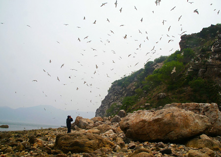 “海貓島”:追逐海鷗 地理位置:海驢島和雞鳴島是相距很近的兩個(gè)海島,位于山東威海榮成縣成山頭西北的大海中。其中,海驢島比較受歡迎,因?yàn)閸u上海鷗很多,而當(dāng)?shù)厝朔Q海鷗為“海貓子”,所以海驢島也被稱為“海貓島”。 風(fēng)光特色:海驢島的地質(zhì)構(gòu)造又是十分獨(dú)特的,由于千萬(wàn)年來(lái)被不知疲倦的海浪沖刷,令島上危峰兀立、怪石嶙峋。島上還有不少大大小小的海蝕洞,大的內(nèi)可行舟,小的海蝕洞則僅能容納數(shù)人。不過(guò),若是喜愛(ài)海鷗的游客,海驢島則是天堂。島上是海鷗的世界,這里的海鷗似乎也是天生膽大,并不怕人,即使有人上前,也只會(huì)依然悠閑自在地在那里“咕咕”地叫著。更多的時(shí)候,這些海鷗還會(huì)成群結(jié)隊(duì)地得在某一塊礁石上,滿滿地覆蓋了一片,遠(yuǎn)遠(yuǎn)望去好像巖石也變成了白色,與藍(lán)天碧海相映成趣。
