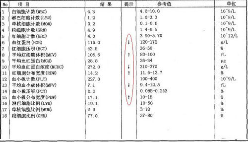 血常規(guī)檢查,少則10項,多則20幾項,密密麻麻的一張化驗單上,天書似的列出了一堆數(shù)字,醫(yī)生看了兩眼就說孩子得了這個病那個感染,他是怎么看的呢?這一張小小的化驗單上到底說了些什么? * 名詞解釋:血常規(guī) 血常規(guī)是最一般,最基本的血液檢驗。血液由液體和有形細(xì)胞兩大部分組成,血常規(guī)檢驗的是血液的細(xì)胞部分。血液有三種不同功能的細(xì)胞——紅細(xì)胞(俗稱紅血球),白細(xì)胞(俗稱白血球)、血小板。通過觀察數(shù)量變化及形態(tài)分布,判斷疾病。是醫(yī)生診斷病情的常用輔助檢查手段之一。 * 什么時候要驗血常規(guī) 如果寶寶出現(xiàn)了發(fā)燒、咳嗽、拉肚子、微量元素是否缺乏等狀況,到了醫(yī)院,醫(yī)生一般情況下就會先讓寶貝化驗血常規(guī)。 取血: 進(jìn)行血常規(guī)化驗時,因為選取化驗的部位大多為指尖或耳垂,只需要一滴血即可,所以媽媽們不必?fù)?dān)心,只要積極配合檢驗師即可。 檢驗?zāi)康模?/B> 血常規(guī)是用來衡量血液變化的化驗項目,它能夠反映身體是否遭遇了感染,而且還能簡易判定感染的是病毒還是細(xì)菌;同時它還能說明寶寶的營養(yǎng)狀況,是否存在貧血等。 * 完全無醫(yī)學(xué)常識,只需看上下箭頭 怎樣判斷化驗結(jié)果異常 拿到化驗單,媽媽們重點找一下這四項即可,那就是白細(xì)胞、紅細(xì)胞、血紅蛋白和血小板;灲Y(jié)果后面如果出現(xiàn)“↓”或“L”,提示結(jié)果低于正常;如果“↑”或“H”,說化驗明結(jié)果高于正常。 貧血主要看紅細(xì)胞數(shù)量及血紅蛋白值,缺鐵性貧血主要依據(jù)血紅蛋白值,如果連紅細(xì)胞計數(shù)都低了,那情況就不容樂觀了。 看體內(nèi)感染情況主要就是白細(xì)胞計數(shù),會引起如咳嗽、發(fā)燒、拉肚子等癥狀。 怎樣看孩子的病情程度 看白細(xì)胞的數(shù)量:如果白細(xì)胞的數(shù)量大于10000,就提示孩子有細(xì)菌感染,需要使用抗菌素治療。 * 通讀化驗單,先搞清標(biāo)準(zhǔn)值 對于不同日齡、月齡和年齡段的寶寶而言,紅細(xì)胞、白細(xì)胞等項目的具體參考值有一定的差異,而一些醫(yī)院在評測時并不會針對兒童的標(biāo)準(zhǔn)來評價。所以在看上下箭頭的基礎(chǔ)上,想要了解更明確的病情,還需要參考寶寶現(xiàn)階段的血液細(xì)胞正常值。 * 這些細(xì)胞檢查異常代表哪些病癥? 1、紅細(xì)胞計數(shù)(RBC) 紅細(xì)胞減少: ①紅細(xì)胞生成減少,見于白血病等病 ②破壞增多:急性大出血、嚴(yán)重的組織損傷及血細(xì)胞的破壞等 ③合成障礙:缺鐵,維生素B12的缺乏等 紅細(xì)胞增多: 常見于身體缺氧、血液濃縮、真性紅細(xì)胞增多癥、肺氣腫等。 2、血紅蛋白測定(HB或HGB) 血紅蛋白減少: 多見于種貧血,如急性、慢性再生障礙性貧血、缺鐵性貧血等。 血紅蛋白增多: 常見于身體缺氧、血液濃縮、真性紅細(xì)胞增多癥、肺氣腫等。 3、白細(xì)胞計數(shù)(WBC) 生理性白細(xì)胞增高: 多見于劇烈運動、進(jìn)食后、妊娠、新生兒。另外采血部位不同,也可使白細(xì)胞數(shù)有差異,如耳垂血比手指血的白細(xì)胞數(shù)平均要高一些。 病理性白細(xì)胞增多: 見于急性化膿性感染、尿毒癥、白血病、組織損傷、急性出血等。 病理性白細(xì)胞減少: 再生障礙性貧血、某些傳染病、肝硬化、脾功能亢進(jìn)、放療化療等。 4、白細(xì)胞分類計數(shù)(DC) 中性桿狀核粒細(xì)胞增高: 見于急性化膿性感染、 大出血、嚴(yán)重組織損傷、慢性粒細(xì)胞膜性白血病及安眠藥中毒等。 中性分葉核粒細(xì)胞減少: 多見于某些傳染病、再生障礙性貧血、粒細(xì)胞缺乏癥等。 淋巴細(xì)胞增高: 見于傳染性淋巴細(xì)胞增多癥、結(jié)核病、瘧疾、慢性淋巴細(xì)胞白血病、百日咳、某些病毒感染等。 淋巴細(xì)胞減少: 見于淋巴細(xì)胞破壞過多,如長期化療、X射線照射后及免疫缺陷病等。 單核細(xì)胞增高: 見于單核細(xì)胞白血病、結(jié)核病活動期、瘧疾等。 5、嗜酸性粒細(xì)胞直接計數(shù)(EOS) 嗜酸性粒細(xì)胞增多: 見于牛皮癬、天疤瘡、濕疹、支氣管哮喘、食物過敏,一些血液病及腫瘤,如慢性粒細(xì)胞性白血病、鼻咽癌、肺癌以及宮頸癌等。 嗜酸性粒細(xì)胞減少: 見于傷寒、副傷寒早期、長期使用腎上腺皮質(zhì)激素后。 指導(dǎo)專家:沈文 中國藥膳研究會理事、中國藥膳研究會專業(yè)制作委員會副秘書長,國家級高級公共營養(yǎng)師、中醫(yī)師。 |