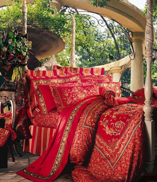 紅色成主流色調(diào) 床上用品自然也不例外,選用紅色就是想圖個熱鬧,讓大喜的日子能更添幾分喜慶。似乎有種默契,今秋富安娜、雅芳婷、雅蘭、卡撒天嬌等床品品牌無一例外地把紅色作為主流色調(diào),以富安娜為例,一款秋冬紅色床品的主題是《丹?鳳?花?緣 醉美紅顏》,其最突出的特點是產(chǎn)品的題材均來自于中國元素,傳統(tǒng)的龍鳳圖案,牡丹、百合、同心結(jié)圖案等,輔以象征富貴的銀線、金線,面料上以純棉貢緞為主,大膽采用織錦緞,薄紗。 此外,富安娜的以櫥窗花“龍鳳呈祥”,它采用了云紋的表現(xiàn)技法,色彩均勻,細膩,借助金線勾勒的寫實鳳凰、牡丹、百合表現(xiàn)生活的甜美與殷實。以“錦繡世家”為代表的織錦緞套件,采用古典唯美的織錦緞為面料,紋樣設計繁復,華麗富貴,為浪漫的婚禮做完美的注解。 溫馨提醒:此紅色系列產(chǎn)品適用于采取中式婚禮的新人,尤其適合中式裝修風格婚房。