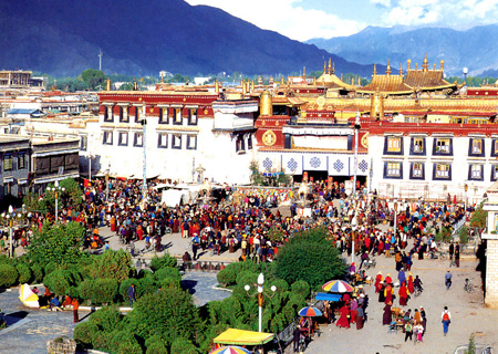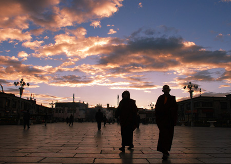 大昭寺廣場(chǎng)前的石板被磕長(zhǎng)頭的信徒們用身體打磨得發(fā)亮,積年累月,這里積累了太多的虔誠和信仰,讓人走過時(shí)不由得肅然起敬。