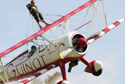 英國南部Cirencester,8歲的Tiger Brewer站在飛機(jī)的機(jī)翼上,這個(gè)飛機(jī)是他祖父的,他成為世界上年齡最小的機(jī)翼漫步者。
