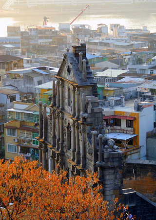 澳門游乘巴士最方便,不用一天的時間,好像已經(jīng)將澳門繞了一圈。白天里的澳門,雖沒有香港那樣珠光寶氣,艷麗動人,卻自守著一份小家碧玉的寧靜與傲氣。沒有理由不去這個城市逛逛。 來到澳門,首先就要一睹“大三巴”牌坊的真容。這是一堵頗具氣勢的灰色大墻。小心撫摸它粗糙的表面,像是不經(jīng)意觸到歷史的臉,驀地想起圓明園里那幾根滄桑佇立的石柱,原來它們都是歲月最忠實的守望者。而那高高的拱門,又讓人不得不升起走近凱旋門的幻覺。