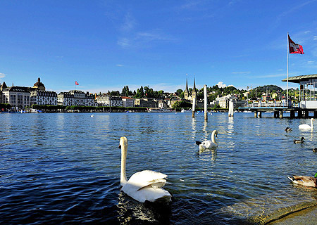 太陽躲在云后時,淡淡的薄紗似的水氣浮上來,湖面煙波浩渺,岸邊建筑如被薄紗籠罩,隱約倒映湖面,如畫的風(fēng)景亦幻亦真,無論是兀立湖邊的蔥蘢樹木,還是被淡淡水氣霧氣罩著的山間小屋,一樣令人迷醉。 天鵝和水鴨,三三兩兩,游弋無聲。湖之清凈如遠(yuǎn)方雪山,水草小魚,歷歷可見。游船的駕駛員一位當(dāng)?shù)毓媚飬s說在上個世紀(jì)70年代時,琉森湖還是一片污濁,后經(jīng)過不懈治理,終于重見清澈。如今,純凈的湖光山色使琉森成為瑞士最美麗的城市。 湖光山色的琉森美景,也慰藉了諸多藝術(shù)大師的心靈。西班牙大師畢加索晚年曾在琉森好友家長住,在此創(chuàng)作大量作品,后全部贈給好友之女,成為rosengart收藏館的鎮(zhèn)館之寶。托爾斯泰曾在此生活過一段時間,寫出同名小說《琉森》。托爾斯泰之后,主張個人意志的哲學(xué)家尼采、法國著名的批判現(xiàn)實主義作家司湯達(dá)、美國的馬克·吐溫等人也相繼漫游琉森。法國作家雨果也多次到過琉森,他住過的房子至今完好地保存在羅伊斯河北岸。他曾吟詠:“琉森幽雅、靜謐,碧水輕輕地拍著河岸,柔水在我的腳下流淌……”大仲馬則稱琉森為“世界最美的蚌殼中的明珠”。很多音樂家在此激發(fā)了靈感,創(chuàng)作出不朽的名篇。貝多芬的《月光曲》,據(jù)說就是受了詩人雷爾斯塔布的評論影響:第一樂章使人想起“猶如在瑞士琉森月光閃爍的湖面上搖蕩的船兒一樣”。沿湖有一條路叫“理查德·瓦格納路”,是為紀(jì)念德國作曲家理查德·瓦格納修建的。瓦格納酷愛琉森,1859年在此完成了《特里斯坦與伊索爾德》歌劇,后又創(chuàng)作了《齊格弗里特》田園交響曲,他的傳世之作《紐倫堡的詩人》和《諸神的黃昏》也都是在這里完成的。我想像著當(dāng)年的瓦格納,應(yīng)該就是這樣一邊在湖邊悠閑地散步,一邊構(gòu)思著悠揚(yáng)的樂曲,盡管他夸張地說,“琉森的溫柔使我把音樂都忘了!爆F(xiàn)在,他的別墅已改作博物館,供人參觀。他們的故事使琉森增添了更多的文化色彩。 |