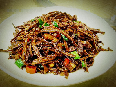 原 料:井岡山特產(chǎn)烏煙筍,豬肉絲、井岡山當(dāng)?shù)馗杉t椒 做法: 1、上鍋熱油,加入過過淀粉的豬肉絲,翻炒熟后成盤備用; 2、鍋中放油加入蔥蒜沫,炒出香味后加入煙筍絲、辣椒絲翻炒,倒入炒好的豬肉絲加鹽、味精翻炒,炒熟即可。 |