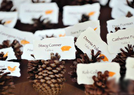 把秋天的松殼作為裝飾物添加到結(jié)婚現(xiàn)場(chǎng),別致有趣味,同時(shí)使整個(gè)會(huì)場(chǎng)的氣氛更加生機(jī)昂然。