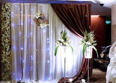 蕾絲+絲綢組成的迎賓墻,不需要太多的花哨。