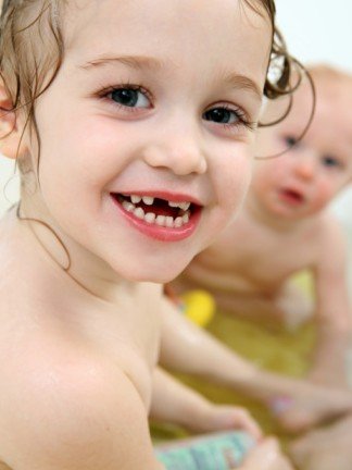 一、浴中閑聊 在為寶寶洗澡時(shí),指出他身上的各種構(gòu)造,形容你在做的動(dòng)作:“我現(xiàn)在在洗你的手,你的手指卷得好緊哦!松開你的手,讓我洗洗你的手指!” 跟寶寶閑聊時(shí)注意不要用兒語,“松開你的手!”不要說“松開你的'手手'”。因?yàn)樽鲋悄芴嵘龝r(shí),給寶寶的資訊就必須是完全正確的!笆质帧笔且粋(gè)錯(cuò)誤的資訊,所以就不要用。因?yàn)槠鸪跄愀鷮殞氃谙丛栝e聊時(shí),他不了解你在說什么,但不久他就會(huì)漸漸曉得“松開你的手”是什么意思。 二、水中追捕 預(yù)備好一些水中玩具,也可以用一些用品代替如,乒乓球、小毛巾、塑膠吸管、空的瓶子等會(huì)浮的東西。先在浴缸放水(寶寶坐下時(shí)水高至腰際),用一手托住寶寶,使他在浴缸中坐穩(wěn)。另一手拍拍玩具,引他注意:“你看空瓶子要浮到你那里去了!”撿起玩具,讓它從空中掉入水里:“撲通!瓶子的聲音好大!”在水中用手?jǐn)噭?dòng),使玩具浮動(dòng):“趕快抓它!瓶子要跑掉了!”寶寶第一次做這智能提升活動(dòng)時(shí)也許不會(huì)抓到水中浮動(dòng)的小玩具,但多做了幾次后,他就會(huì)用手去觸摸浮到水中的玩具了。 三、溫涼浸水 在浴缸中放兩個(gè)小臉盆,一個(gè)裝了溫暖的水,一個(gè)裝了涼爽的水,讓寶寶把雙手先浸入暖水,告訴他“這是溫暖!”五秒之后,讓他雙手浸入涼爽的水,感覺差別,這個(gè)活動(dòng)會(huì)提升寶寶的觸覺智能。 四、浮游自在 在浴缸中放滿十五厘米深的水。讓寶寶在你兩手支撐中仰臥著,你可用一手托住他的脖子和肩膀,一手托住他的小屁股,慢慢把他放入浴缸,托著他前后浮游,告訴他:“你看,你浮在水中,就像一個(gè)游泳健將!”培養(yǎng)孩子的平衡智能,激發(fā)他對(duì)水上運(yùn)動(dòng)的喜愛。 五、空中騎士 洗好了澡,用一條毛巾鋪在桌上,另外一條毛巾把寶寶擦干,然后讓寶寶在你面前仰臥,寶寶的腳靠近你,你用兩手輕輕抓住他的雙腳,為他做如倒騎童車的圓弧動(dòng)作,做了六次之后,放開他的雙手,輕輕放在兩側(cè),往上舉起高過他的頭部,然后伸向兩側(cè)再放回身旁。此法不要超過一分鐘,以防累壞寶寶。這活動(dòng)的主要功用在提升寶寶的運(yùn)動(dòng)智能。 六、浴后摩背 洗澡后讓寶寶趴在鋪于軟墊上的毛巾上面,你可以跪在寶寶身旁,兩手并排放于寶寶的后頸部,慢慢左右移動(dòng),往下一直按摩到臀部,然后用同法再按摩上來到后頸部。有的寶寶受按摩時(shí)會(huì)怡然入睡,有的會(huì)精力充沛興奮得手舞足蹈。此法對(duì)寶寶的觸覺智能最有益處。 |