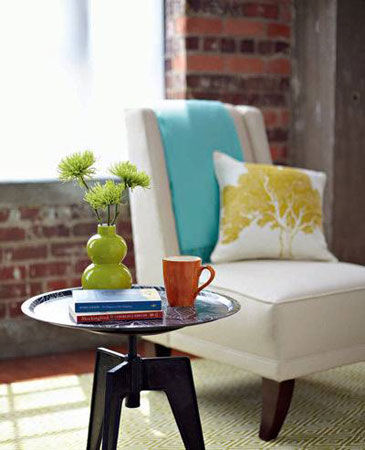 1.二合一茶幾 找一把可調(diào)節(jié)高度的座椅,類似辦公室的轉(zhuǎn)椅,只保留底下的支架部分,然后將支架的頂部與大托盤粘合到一起。其余的就剩下等待了,等膠晾干,新的異想天開的茶幾亮相。