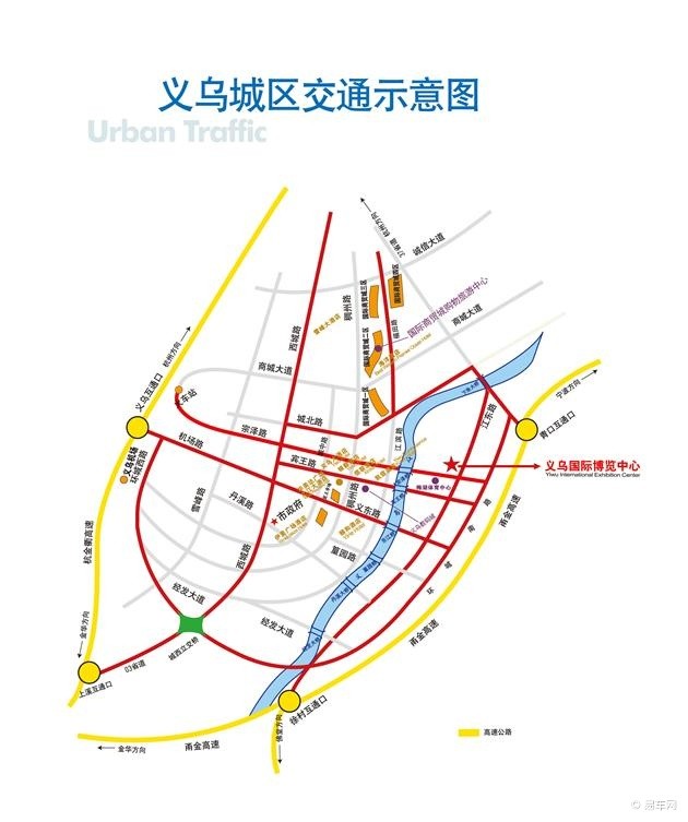 義烏國(guó)際博覽中心在義烏市文化中心區(qū)內(nèi),位于江東路以北,宗澤路以東,西與梅湖會(huì)展中心相鄰,北依義烏江,靠近南環(huán)快速道、國(guó)際商貿(mào)城和規(guī)劃中的中央商務(wù)區(qū),距國(guó)際商貿(mào)城1.5公里,距義烏機(jī)場(chǎng)10公里,與新火車站相距14公里,交通便捷?沙俗2路、7路、16路、101路、20路、804路至?xí)贵w育中心站。