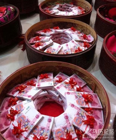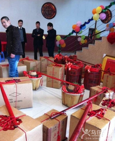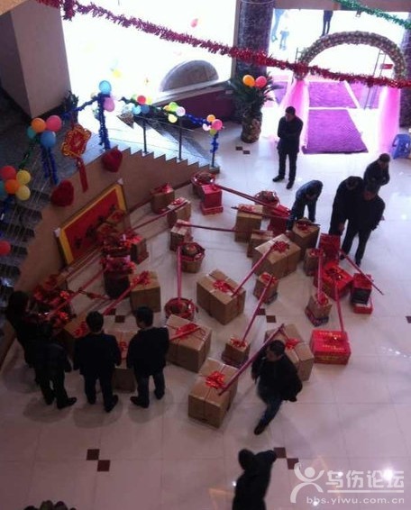 十八個(gè)壯漢挑著擔(dān)子,擔(dān)子兩頭的竹籃里一共放著8888888元現(xiàn)金。 他們后面跟著瑪莎拉蒂、奔馳等10輛豪車。 昨天,在浦江一點(diǎn)紅大道出現(xiàn)的豪華定親隊(duì)伍,被網(wǎng)友拍下照片發(fā)到網(wǎng)上,不少網(wǎng)友開玩笑說,“土豪,我們做朋友吧”。 竹籃里裝了888萬(wàn)現(xiàn)金 昨天上午10點(diǎn)多,浦江微博網(wǎng)友“可樂80888”經(jīng)過一點(diǎn)紅大道牧童集團(tuán)附近,發(fā)現(xiàn)一支豪華車隊(duì)在路上慢慢行駛,打頭的是一輛瑪莎拉蒂,后面清一色的奔馳S級(jí)轎車。車隊(duì)前面的,走著五六十個(gè)人,而最前面的18個(gè)壯漢則挑著擔(dān)子。 一看這架勢(shì),“可樂80888”就知道遇到大戶人家定親了,趕緊過去湊熱鬧,跟著定親隊(duì)伍走進(jìn)一家工貿(mào)公司辦公樓的大廳里。 等擔(dān)子被放下時(shí),“可樂80888”徹底驚呆了,竹籃子里裝著嶄新的百元大鈔,還有首飾、服裝、日用品等。 “我在浦江見過定親最多挑168萬(wàn)元現(xiàn)金的!薄翱蓸80888”打聽了一下,確認(rèn)現(xiàn)場(chǎng)現(xiàn)金是8888888元,被驚到的他趕緊拍照,發(fā)微博、發(fā)微信,很快,“浦江土豪定親彩禮高達(dá)888萬(wàn)”就成為網(wǎng)絡(luò)熱門話題。 女方低調(diào)辦了11桌 昨天中午12點(diǎn),記者趕到定親現(xiàn)場(chǎng),公司大樓前后停滿車子,定親宴在辦公樓的大廳舉行。我數(shù)了數(shù),只有11桌,女方家屬說,他們想低調(diào)點(diǎn),所以只請(qǐng)了親人,也沒在酒店擺。 聽到有記者來(lái)采訪,定親雙方不愿多說,給記者發(fā)了喜糖。 在訂婚宴上,準(zhǔn)新郎新娘都很低調(diào),準(zhǔn)新郎個(gè)子不高,戴著眼鏡,留著短發(fā),看起來(lái)很內(nèi)向,準(zhǔn)新娘看起來(lái)外向得多,幫著家里人給客人們發(fā)喜糖。 女方的一位親屬透露,男方是義烏人,姓黃,27歲,父親以前是做建筑生意的,家底殷實(shí),在義烏市區(qū)有十多棟樓。 準(zhǔn)新娘也姓黃,26歲,家里也做生意,除了家紡和毛絨玩具,還有其他的投資,算是門當(dāng)戶對(duì)。 準(zhǔn)新郎是準(zhǔn)新娘哥哥的朋友,三個(gè)月前,通過朋友認(rèn)識(shí),覺得準(zhǔn)新郎人不錯(cuò),想到自己還有個(gè)未嫁的妹妹,哥哥就當(dāng)了中間人,沒想到兩個(gè)人一見如故,很快就走到了一起。 兩人在一起兩個(gè)多月,準(zhǔn)新郎父母主動(dòng)提定親,兩家人坐在一起沒商量多久就定下來(lái)。原本男方準(zhǔn)備的彩禮是500萬(wàn)元現(xiàn)金,但女方覺得不如6、8來(lái)得好聽,最終把彩禮定在8888888元。 我算了一下,嶄新的百元人民幣每張大約1.15克,一萬(wàn)元就是115克,不算8888元零頭,光888萬(wàn)的現(xiàn)金就重102.12公斤,至少要兩個(gè)人才能背得動(dòng)。 現(xiàn)金提前半個(gè)月取好了 為了昨天的定親,男方半個(gè)月前就開始準(zhǔn)備了,尤其是彩禮,為了取到的錢全部是新幣,早早地就到銀行預(yù)約,女方哥哥還幫忙到中國(guó)銀行取了200萬(wàn)元的現(xiàn)金。 “錢放在家里的保險(xiǎn)箱,沒特殊保護(hù),反正沒人知道!睖(zhǔn)新娘哥哥透露。 昨天上午10點(diǎn)20分,定親雙方在一點(diǎn)紅大道牧童集團(tuán)門口附近迎親,男方按照義烏的民俗,把定金放在竹籃里,十八個(gè)狀漢挑著十八擔(dān)禮物和現(xiàn)金往準(zhǔn)新娘家的公司走,定親車輛則跟在后面。 從牧童集團(tuán)到準(zhǔn)新娘家公司全程1.5公里,天下著毛毛雨,路滑,再加上每個(gè)擔(dān)子上彩禮又不輕,五六十號(hào)人組成的定親隊(duì)伍足足走了20分鐘。 這么多現(xiàn)金,萬(wàn)一被搶了怎么辦? 準(zhǔn)新娘哥哥說,在浦江,定親彩禮一般都在幾十萬(wàn)元以上,一兩百萬(wàn)元也很平常,再說這么多人陪著,誰(shuí)也不敢貿(mào)然去打主意的!拔覀儗(duì)彩禮單簡(jiǎn)單核實(shí)后,為了安全著想,就讓會(huì)計(jì)把錢存到銀行去了! 按照當(dāng)?shù)仫L(fēng)俗,男方定親的彩禮,并不是真的收了,到結(jié)婚時(shí)不僅要還回去,還要置辦一些嫁妝帶過去。 “十八擔(dān)”是最高訂婚規(guī)格 “十八擔(dān)”是義烏傳統(tǒng)民俗中最豪華最利市的一種喜事級(jí)別。 訂婚的當(dāng)天,男方家長(zhǎng)要邀請(qǐng)自家的親朋好友,帶上精心準(zhǔn)備的禮物在媒人的引領(lǐng)下,由舅舅帶隊(duì)前往女方家里送禮訂婚。 “十八擔(dān)”里面裝著現(xiàn)金、金銀首飾、酒水、日用品等。以往酒水和日用品占的比例大得多,這些年隨著經(jīng)濟(jì)的發(fā)展,擔(dān)子里的現(xiàn)金越來(lái)越多,在義烏7位數(shù)的彩禮司空見慣。 迎接男方送禮對(duì)物時(shí),女方要在家門幾百米外安排親朋好友迎接,人數(shù)不僅要和男方送禮的人數(shù)一樣,身份也要相當(dāng)。女方家長(zhǎng)收到禮單后,雙方還要交換“年庚帖”,為的是日后作為結(jié)婚的憑證。宴請(qǐng)結(jié)束后,女方要準(zhǔn)備回禮,讓自家親朋好友再挑上擔(dān)子,送出幾百米,才算是訂婚結(jié)束。 |