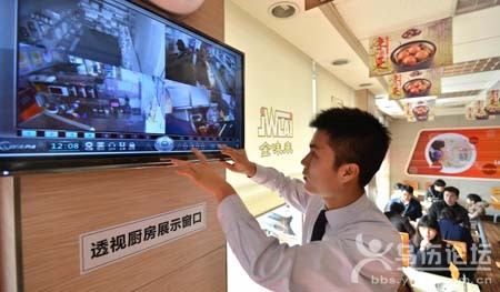 昨日中午,義烏一家餐廳工作人員在店內(nèi)調(diào)試廚房?jī)?nèi)的視頻畫(huà)面,顧客通過(guò)電視“直播”,可以清晰地看到食物烹飪?nèi)^(guò)程。 據(jù)介紹,目前我市共有各類(lèi)餐飲單位商家6307家。為營(yíng)造放心的用餐環(huán)境,自上半年開(kāi)始,全市開(kāi)展了餐飲服務(wù)食品安全“透視廚房”活動(dòng),通過(guò)設(shè)立“透視廚房”、“廚房開(kāi)放日”等方式,倡導(dǎo)餐飲行業(yè)自律,讓更多消費(fèi)者參與對(duì)餐飲行業(yè)的監(jiān)督。截至昨日,全市104家餐飲單位實(shí)現(xiàn)了“透視廚房”直播。 |