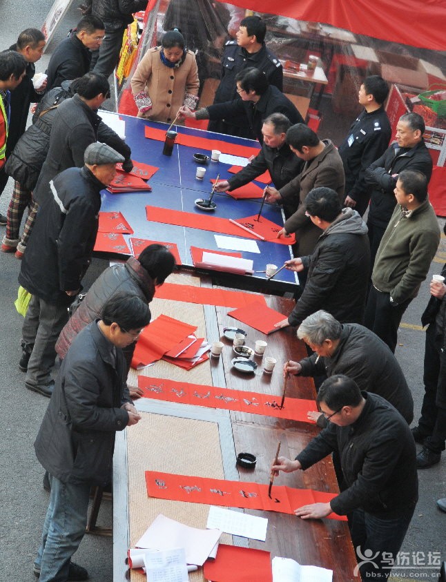 : 前天,義烏市書法家協(xié)會主席貝立新攜10名書法家來到義烏三溪堂國藥館,現(xiàn)場寫春聯(lián)送春聯(lián),為市民送上新春的祝福。