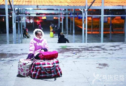 在春運(yùn)中,有這樣一群特殊的人群,在龐大的春運(yùn)大軍里,他們是那么不顯眼,被父母抱著或者牽著,跟著父母出站進(jìn)站。每到這時,他們或跟著父母回到工作的城市,或獨自回到家鄉(xiāng)。他們用好奇的眼光打探身邊的所有事,我們稱他們?yōu)椤靶『蝤B”。昨天是春運(yùn)的第26天,寒夜里,記者走進(jìn)了義烏火車西站,與這些“小候鳥”一起等待離別或相聚。 “我要賺錢接爺爺來義烏” 昨天晚上,義烏寒風(fēng)瑟瑟,在義烏火車西站出站口,k1247次準(zhǔn)點到站。9歲的