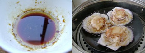 2、鍋入油放入姜絲炒香,加入六月鮮,黃酒,李錦記蒸魚豉油做成調(diào)料汁; 3、墊好粉絲的扇貝上用小勺均勻澆上做好的調(diào)料汁,上蒸鍋大火5分鐘就好。