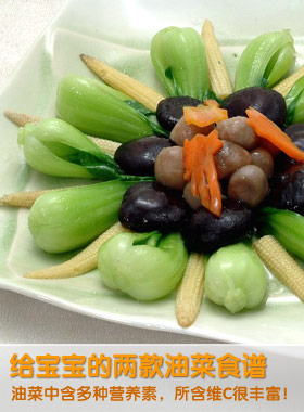 油菜的招牌營養(yǎng)素含量及其食療價值可稱得上諸種蔬菜中的佼佼者。據(jù)專家測定,油菜中含多種營養(yǎng)素,所含的維生素C豐富。維生素C在嚴寒的冬季有增強寶寶體質(zhì),預防感冒的作用,所以,媽媽們要給寶寶餐桌添點油菜哦。 一:油菜營養(yǎng)分析 二:油菜適合人群 三:油菜食療作用 四:油菜做法指導 五:推薦兩款油菜做法 一、油菜營養(yǎng)分析1. 降低血脂: 油菜為低脂肪蔬菜,且含有膳食纖維,能與膽酸鹽和食物中的膽固醇及甘油三酯結(jié)合,并從糞便排出,從而減少脂類的吸收,故可用來降血脂。非常適合胖寶寶食用哦。 2. 解毒消腫: 油菜中所含的植物激素,能夠增加酶的形成,對進入人體內(nèi)的致癌物質(zhì)有吸附排斥作用,故有防癌功能。此外,油菜還能增強肝臟的排毒機制,對皮膚瘡癤、乳癰有治療作用。 3. 寬腸通便: 油菜中含有大量的植物纖維素,能促進腸道蠕動,增加糞便的體積,縮短糞便在腸腔停留的時間,對便秘的寶寶也是非常合適的。 4. 強身健體: 油菜含有大量胡蘿卜素和維生素C,有助于增強機體免疫能力。油菜所含鈣量在綠葉蔬菜中為最高。 二、油菜適合人群一般人均可食用。 1. 特別適宜患口腔潰瘍、口角濕白、齒齦出血、腹痛寶寶; 2. 痧痘、小兒麻疹后期、疥瘡等慢性病患者要少吃。 三、油菜食療作用油菜味辛、性溫、無毒,入肝、肺、脾經(jīng); 莖、葉可以消腫解毒,治癰腫丹毒、血痢、勞傷吐血; 種子可行滯活血,治產(chǎn)后心、腹諸疾及惡露不下、蛔蟲腸梗阻。 四、油菜做法指導1. 油菜的食用方法較多,可炒、燒、熗、扒、油菜心可做配料,如“蘑菇油菜”、“扒菜心”、“海米油菜”等。 2. 食用油菜時要現(xiàn)做現(xiàn)切,并用旺火爆炒,這樣既可保持鮮脆,又可使其營養(yǎng)成分不被破壞。 3. 吃剩的熟油菜過夜后就不要再吃,以免造成亞硝酸鹽沉積,易引發(fā)癌癥。 五、推薦兩款油菜做法1、海米油菜 ◆材料◆海米40克、油菜200克。 ◆調(diào)料◆鹽、植物油、高湯各適量。 做法: 1、將海米洗凈,用溫水泡軟;油菜洗凈,切段。 2、油鍋燒熱后,加入高湯大火煮沸,再把油菜段、海米一同下鍋,轉(zhuǎn)中火煮沸后,加鹽調(diào)味,再轉(zhuǎn)大火收汁。 3、盛盤時,將油菜段放在下面,海米放在上面,再淋入少許原湯汁即可。 2、蟹棒小油菜 ◆材料◆蟹棒200克、油菜100克。 ◆調(diào)料◆鹽、植物油、蔥、姜、水淀粉各適量。 做法: 1、蟹棒洗凈,瀝干水分,切塊;蔥、姜分別洗凈,切成末;油菜洗凈,切段,用沸水焯燙,撈出瀝水。 2、鍋置火上,放適量植物油燒熱后,下入蔥末、姜末爆香,加蟹棒塊煸炒。 3、再放入油菜段炒至熟,加鹽調(diào)味,用水淀粉勾芡即可。 |
