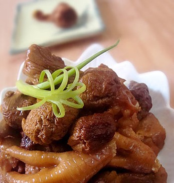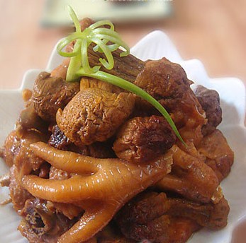 原料: 三黃雞半邊、鮮雞腳6個(gè)、姬松茸1兩、姜3片、米酒2小勺、生抽3大勺、老抽大勺、鹽、糖適量。 做法: 1、雞洗凈斬件,姜切片待用; 2、姬松茸用溫水泡發(fā)半小時(shí),洗凈備用,泡姬松茸的水留著燉雞; 3、鍋下水燒開后,加入1小勺米酒,放入雞和雞腳焯水; 4、用清水洗凈浮沫,瀝干水份待用; 5、把瀝干水份的雞、雞腳和姜片放入電高壓鍋內(nèi); 6、再把姬松茸和泡姬松茸的水倒入鍋入; 7、加入米酒1小勺、生抽3大勺、老抽大勺、鹽、糖適量; 8、拌勻后,蓋上蓋,保壓20分鐘; 9、等電高壓鍋氣排完后,打開蓋子即可食用(如果覺得醬汁較多,可打開鍋蓋,插上電源煮一會(huì),等醬汁濃稠再關(guān)電)。