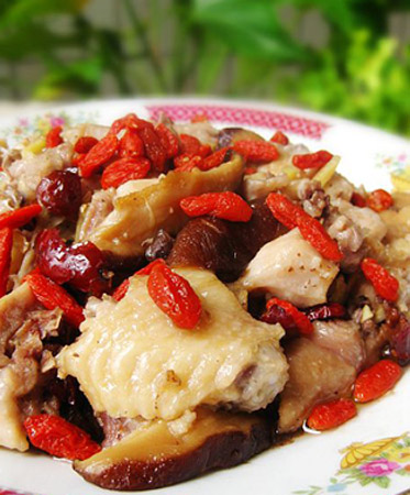 原料:雞半只 配料:香菇、紅棗、枸杞子(配色用,可不放)、姜絲 制作: 1、光雞洗凈后斬件,放入姜絲,加入一點(diǎn)鹽、一點(diǎn)兒白糖、生抽、香油,重點(diǎn)要再加一匙淀粉,這是“滑雞”之滑的秘訣,拌勻后放置半小時(shí)以上使之入味; 2、香菇泡發(fā),紅棗也稍微泡一下,然后把香菇切薄片,紅棗去核切細(xì)(紅棗核易上火,最好去掉); 3、把準(zhǔn)備好的香菇和紅棗加到腌好的雞塊中,拌勻(我泡的香菇多,所以取了一部分墊盤底); 4、拌好的雞塊移到稍微淺口但不會(huì)流出汁的盤子中,淋上少許花生油,蒸鍋燒開后,上鍋加蓋蒸15~20分鐘左右即可。 |