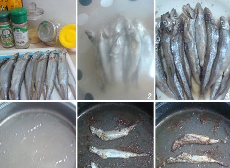 原料: 多春魚、料酒、姜蔥蒜粉、胡椒粉、鹽、雞精、孜然粉。 做法: 1、材料與配料; 2、多春魚解凍后,用清水洗凈,去掉魚腮(或去掉頭,多春魚不用開膛),瀝干水份待用; 3、魚身上抹上料酒、鹽、胡椒粉、姜蔥蒜粉、雞精腌制20分鐘左右; 4、5、6、鍋中放油,然后把多春魚放入鍋中小火煎,兩面煎至金黃,撒上孜然粉,再煎一會(huì)即可(多春魚的表皮很薄,煎的時(shí)候翻動(dòng)要小心)。