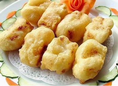 2、面粉,雞蛋,油,,泡打粉,水 制糊(酥起糊);