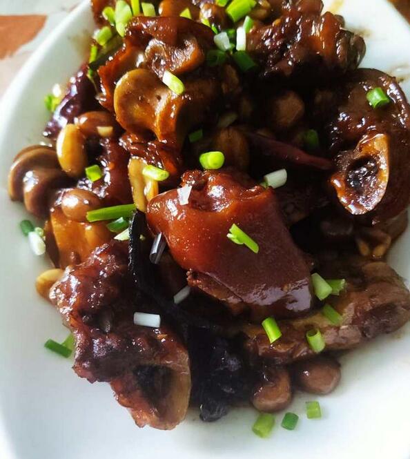 “紅燒豬蹄入口軟糯,女人補(bǔ)充膠原蛋白簡直絕絕子,用土砂鍋做更是入味呢。”
