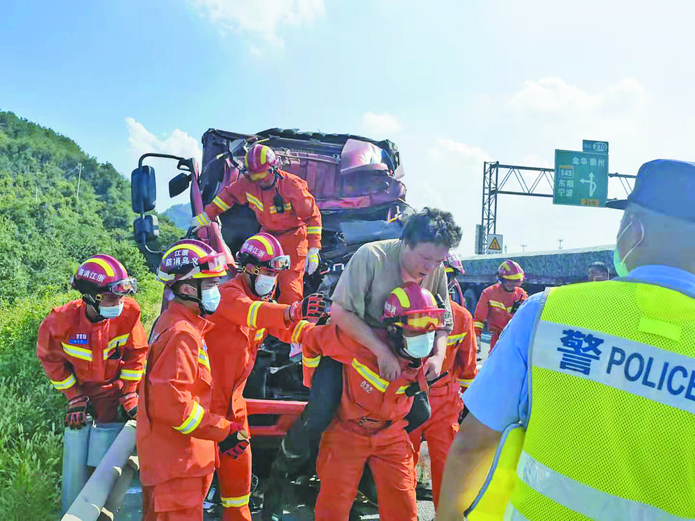 “我是跑長(zhǎng)途拉海鮮的,當(dāng)時(shí)正在車后座上躺著睡覺。突然‘嘭’的一聲巨響把我驚醒,就發(fā)現(xiàn)自己被困在變形的車?yán)锍霾粊砹。車子是同伴開的。”9月10日下午,G60高速義烏段兩輛貨車追尾,導(dǎo)致后車駕駛室內(nèi)兩名人員被困。事故發(fā)生后,義烏市消防救援支隊(duì)緊急調(diào)派北苑特勤站和后宅街道專職消防隊(duì)的消防救援力量趕赴現(xiàn)場(chǎng),成功背出一名被困人員,并將另一人員合力抬出。 消防救援人員到場(chǎng)后,發(fā)現(xiàn)一輛紅色的廂式貨車車頭由于劇烈撞擊已經(jīng)嚴(yán)重變形,車門無法打開,車玻璃碎片等零件散落一地,一名身著白色T恤的男子被卡在駕駛位上無法脫身,不斷發(fā)出呻吟。在駕駛室后座上,躺著另一名受傷男子。經(jīng)詢問,兩人情況良好。 根據(jù)現(xiàn)場(chǎng)情況,消防救援人員用專業(yè)救援器材對(duì)駕駛室部位進(jìn)行破拆,為后續(xù)救援創(chuàng)造有利條件。由于車頭受損嚴(yán)重,駕駛室位置作業(yè)空間狹小,救援難度巨大。在不斷努力下,貨車車門成功破拆,消防救援人員合力將困在駕駛位的男子抬出!皝恚轿冶成蟻!彪S后,后宅街道專職消防隊(duì)的隊(duì)員于鎮(zhèn)江上前將腿部受傷的另一名被困人員從車上背下來轉(zhuǎn)移到安全位置。由于救出及時(shí),目前兩名被困人員情況穩(wěn)定。 義烏消防提醒,駕駛員在行車過程中千萬不要疲勞駕駛、超速行駛,在高速上行車時(shí)務(wù)必保持好車距,謹(jǐn)慎駕駛。 |