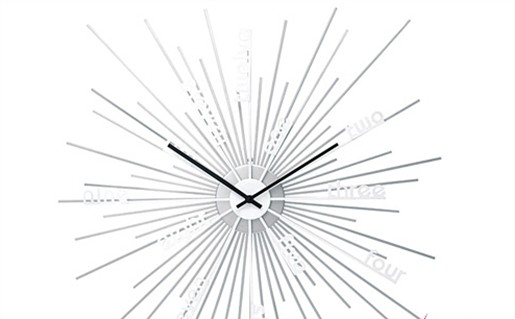 放射線狀掛表個(gè)性十足,黑色表針和銀灰色營(yíng)造一種層次感。