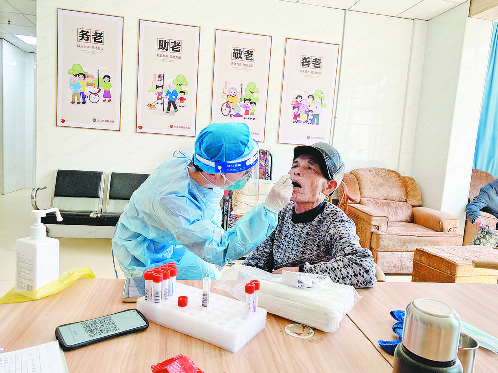 現(xiàn)場,采樣人員身穿厚重的防護(hù)服,有條不紊地準(zhǔn)備好物品,逐一進(jìn)入每個(gè)房間,來到每位老人的床邊,耐心引導(dǎo)每位老人配合采樣。經(jīng)過8個(gè)多小時(shí)的工作,采樣人員完成了12家養(yǎng)老機(jī)構(gòu)的2901名老人及工作人員的核酸檢測(cè)采樣任務(wù)。 據(jù)了解,截至目前,全市養(yǎng)老機(jī)構(gòu)工作人員每7天開展一次全員核酸檢測(cè),除有禁忌癥的7人外,工作人員100%完成了第1、2針劑的疫苗接種,其中82%的工作人員已完成加強(qiáng)針接種,守住守牢養(yǎng)老服務(wù)機(jī)構(gòu)疫情防控的第一道防線。 當(dāng)前,12家養(yǎng)老服務(wù)機(jī)構(gòu)嚴(yán)格按照相關(guān)要求,嚴(yán)格執(zhí)行機(jī)構(gòu)封閉管理,立即落實(shí)核酸檢測(cè),提高疫苗接種比例,建立應(yīng)急隊(duì)伍,提前準(zhǔn)備隔離場所,堅(jiān)持人物同防、人人同防、內(nèi)外同防,織密扎牢養(yǎng)老服務(wù)機(jī)構(gòu)的疫情防控網(wǎng)。 |