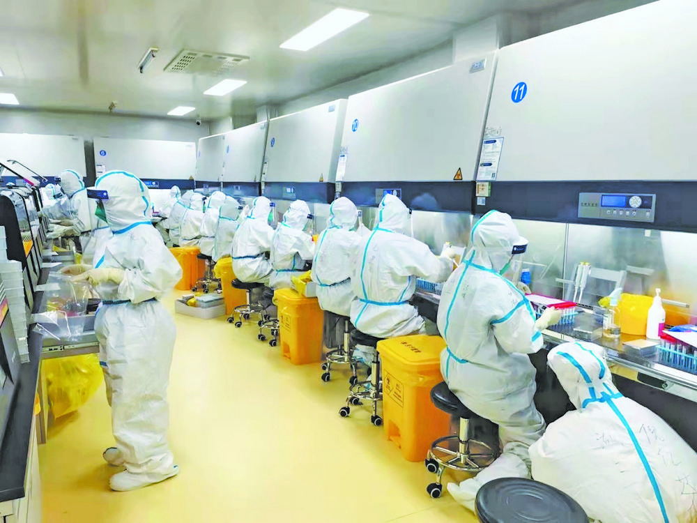 在援滬逆行者中,有這樣一群幕后的“隱形戰(zhàn)士”,他們活躍在戰(zhàn)“疫”前線,離病毒最近,離親人最遠(yuǎn)。他們的職責(zé)雖不是直接接觸患者,卻在努力剝開(kāi)病毒的真?zhèn),讓更多的人避免感染,默默為臨床醫(yī)生提供及時(shí)準(zhǔn)確的感染診斷依據(jù)。他們有一個(gè)共同的名字:檢驗(yàn)師。 4月14日,記者連線浙大四院檢驗(yàn)科副主任檢驗(yàn)師吳英萍,聽(tīng)聽(tīng)她為我們講述馳援期間的故事。3月29日,具有多次馳援經(jīng)驗(yàn)的吳英萍帶領(lǐng)10名隊(duì)員,入駐湖州核酸檢測(cè)基地,負(fù)責(zé)核酸樣本的檢驗(yàn)。 浙大四院核酸檢測(cè)隊(duì)隊(duì)長(zhǎng)吳英萍表示,目前基地的樣本主要來(lái)自于上海和嘉興,最多的時(shí)候一天的標(biāo)本量可達(dá)12萬(wàn),相當(dāng)于一天檢測(cè)120萬(wàn)人口的感染情況,這也是該基地首次達(dá)到日檢10萬(wàn)管的滿負(fù)荷運(yùn)轉(zhuǎn)。 穿戴好防護(hù)服、護(hù)目鏡、醫(yī)用外科口罩、手套、鞋套……這是吳英萍和同事們每天工作前必經(jīng)的準(zhǔn)備流程,在這樣的“全副武裝”下,他們?cè)趯?shí)驗(yàn)室里緊張忙碌地度過(guò)了半個(gè)多月。 從2020年開(kāi)展新型冠狀病毒檢測(cè)工作以來(lái),吳英萍先后馳援過(guò)新疆和省內(nèi)紹興、永康等地,經(jīng)常與病毒短兵相接,把實(shí)驗(yàn)室當(dāng)“戰(zhàn)場(chǎng)”。她說(shuō):“這次馳援上海,參加的其實(shí)是家門(mén)口的戰(zhàn)斗,支援上海,也是為了保衛(wèi)浙江! 在實(shí)驗(yàn)室內(nèi),吳英萍不僅要完成滿負(fù)荷的檢測(cè)工作,同時(shí)也要打起十二分精神,時(shí)刻注意個(gè)人防護(hù),因?yàn)樵谶@里,保證醫(yī)務(wù)人員零感染是一切工作的重中之重。每一天,實(shí)驗(yàn)室里幾百名工作人員連軸轉(zhuǎn),要把16條流水線平穩(wěn)運(yùn)作起來(lái)。而作為管理人員,吳英萍需要考慮的不僅僅是把人員管理好,還要把每個(gè)環(huán)節(jié)都做好,確保每個(gè)崗位上的人一定是最熟練的人,同時(shí)每個(gè)環(huán)節(jié)之間的人和人、崗位和崗位間都要做到完美交接,這樣才能保證實(shí)驗(yàn)室的日檢效率。 在吳英萍身后,隊(duì)員正在埋頭奮戰(zhàn)。在隊(duì)員劉雪柯的身后,是一排排被塞滿的貨架,她投入馳援一線工作以來(lái),與隊(duì)友們并肩作戰(zhàn),每6個(gè)小時(shí)輪一個(gè)班次。劉雪柯所在的小組每一個(gè)班次都要完成2萬(wàn)管的樣本檢驗(yàn),看著身后的標(biāo)本被迅速“消滅”,又逐漸堆滿,她在忙碌之余竟油然生出一種與病毒賽跑的滿足感。 吳英萍說(shuō):“面對(duì)如此高強(qiáng)度、高壓力的工作任務(wù),隊(duì)友們每天都頂住壓力,圓滿完成。大家就像新冠病毒流水線上的偵察兵,頑強(qiáng)拼搏,愈戰(zhàn)愈勇,同時(shí)做到團(tuán)隊(duì)配合默契、高效分工。希望在大家的齊心協(xié)力下,早日打贏這場(chǎng)疫情防控戰(zhàn)! |