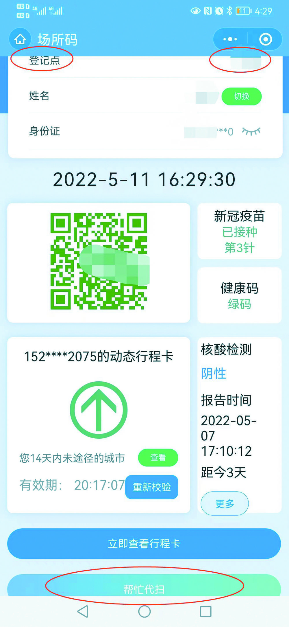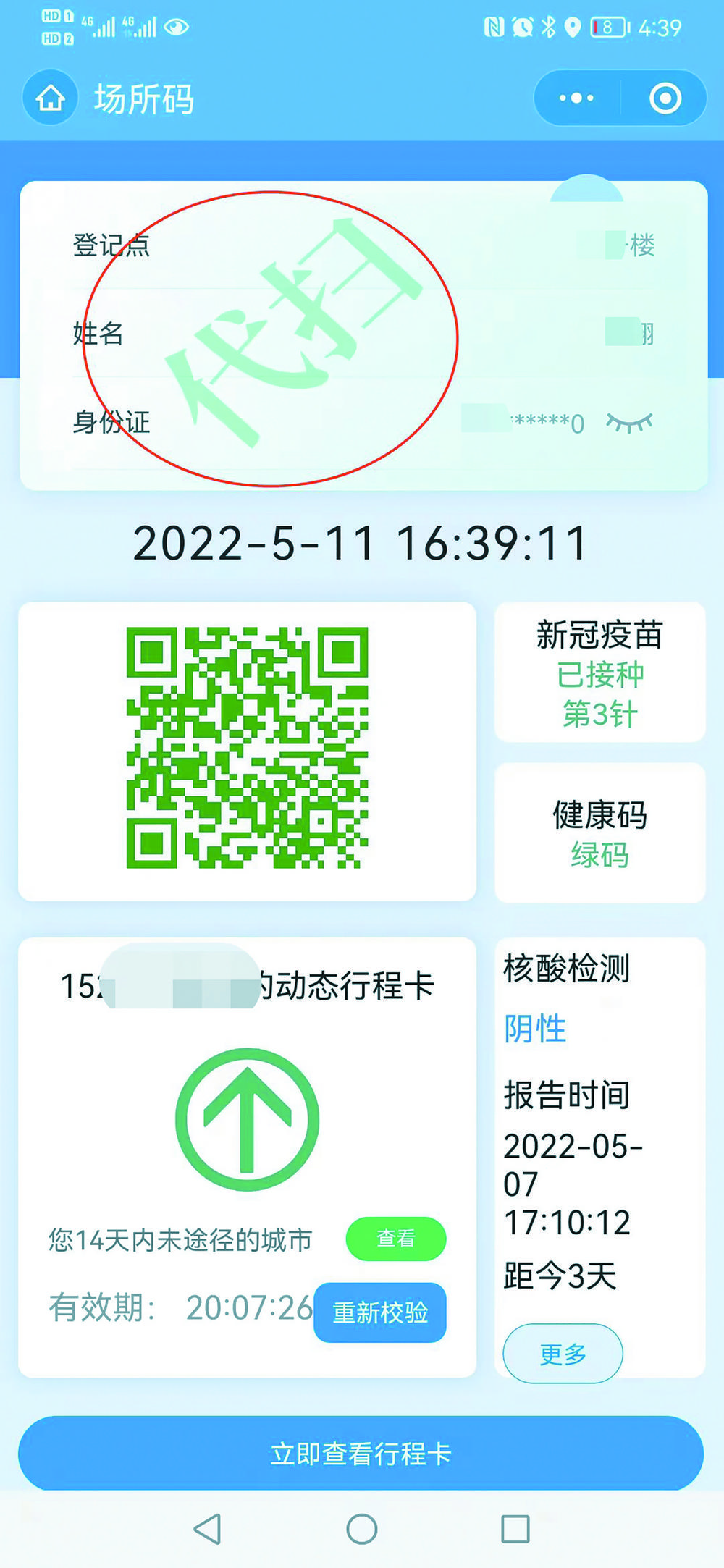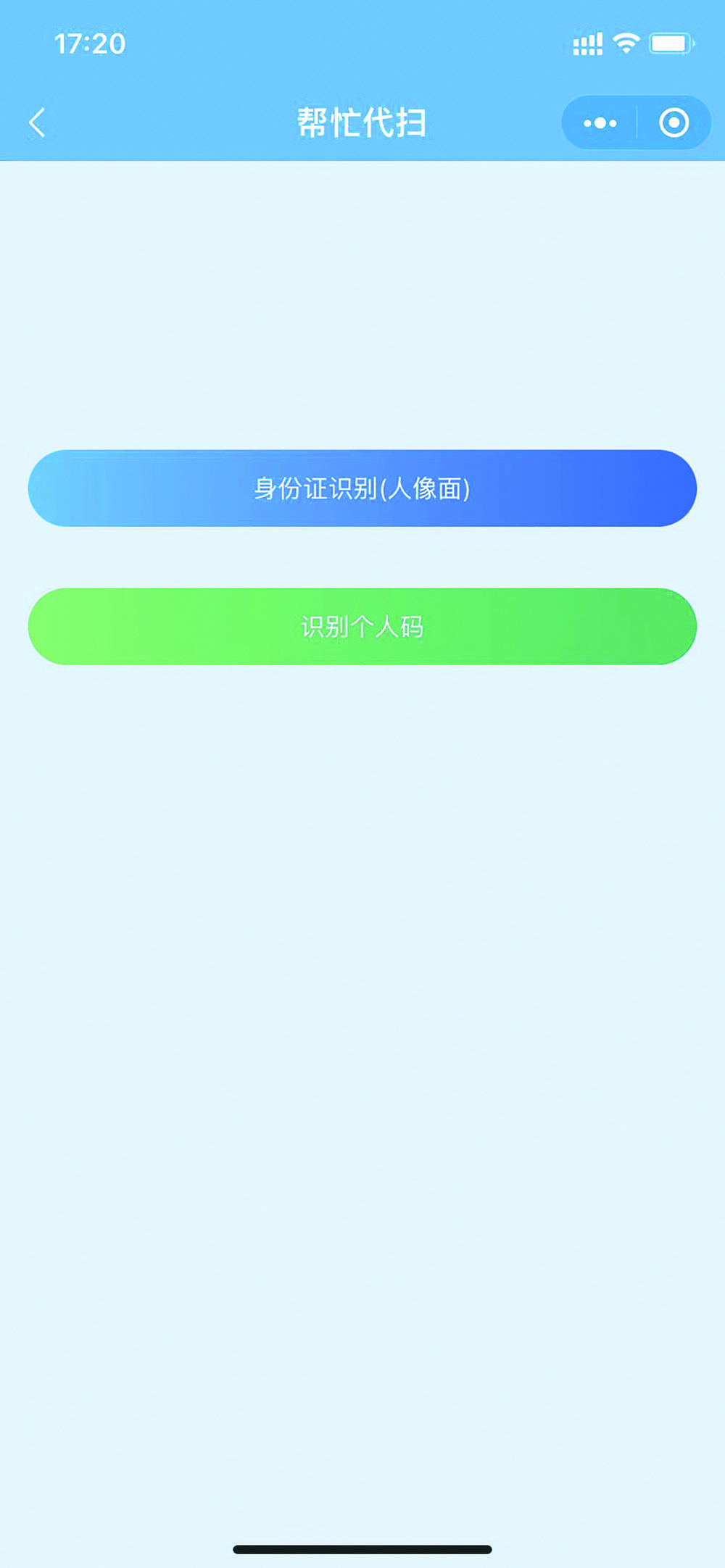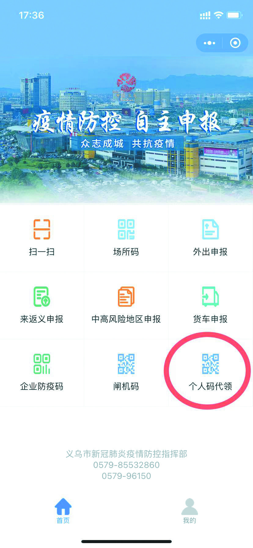 即日起,針對(duì)沒有智能手機(jī)的老人與兒童,親朋好友可以幫其在“義烏防疫”小程序代領(lǐng)“個(gè)人碼”,在進(jìn)入公共場(chǎng)所時(shí),沒有智能手機(jī)的老人與兒童只需要出示“個(gè)人碼”,由同行者或保安代掃,即可顯示場(chǎng)所碼頁面。 功能一:“個(gè)人碼”代領(lǐng) 步驟1:搜索打開“義烏防疫”微信小程序。 步驟2:選擇個(gè)人碼代領(lǐng)。輸入需申領(lǐng)人的姓名、身份證號(hào)、手機(jī)號(hào)進(jìn)行申領(lǐng),也可拍身份證照片完成申領(lǐng)。 步驟3:完成申領(lǐng)后,長(zhǎng)按圖片或截屏,保存至手機(jī)。也可在“我的”界面,選擇“我代領(lǐng)的個(gè)人碼”查看。老年人、學(xué)生可將個(gè)人碼貼在老年證或校園卡的背面,隨身攜帶。 功能二:幫忙代掃 步驟1:出入場(chǎng)所時(shí),可由家人或場(chǎng)所入口管理員先掃場(chǎng)所碼,出現(xiàn)“五碼合一”界面,登記點(diǎn)名稱為所在場(chǎng)所,再點(diǎn)擊界面最下方的“幫忙代掃”。 步驟2:跳轉(zhuǎn)出現(xiàn)“代掃”界面,點(diǎn)擊“識(shí)別個(gè)人碼”,即可掃描個(gè)人碼;或點(diǎn)擊“身份證識(shí)別”,掃描身份證,功能相同。 步驟3:掃個(gè)人碼或身份證后,會(huì)出現(xiàn)帶有水印“代掃”二字的“五碼合一”界面,登記點(diǎn)與幫掃人員在步驟2中的掃碼登記點(diǎn)一致,即完成幫掃。 |