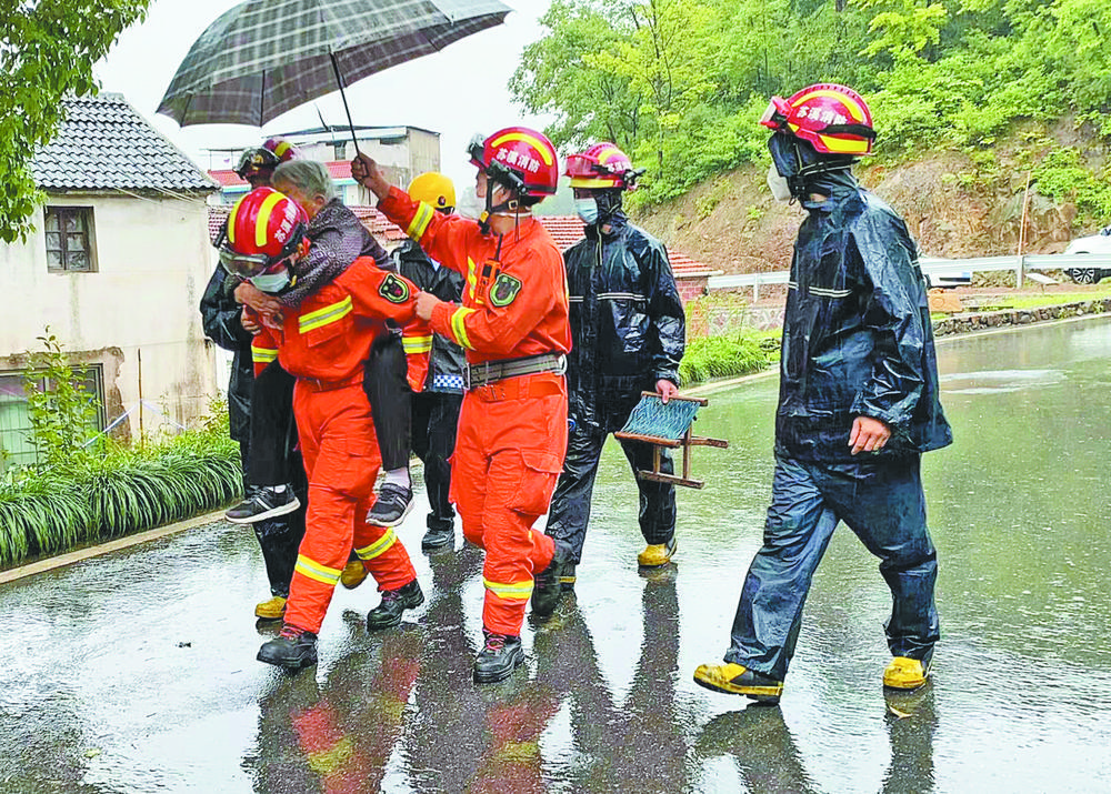 蘇溪消防隊(duì)員轉(zhuǎn)移群眾。 連日來,蘇溪鎮(zhèn)組織鎮(zhèn)、村干部開展汛期大排查,對(duì)邊坡建房、山塘水庫、危舊房、河湖堤岸等重點(diǎn)區(qū)域進(jìn)行逐一檢查并及時(shí)轉(zhuǎn)移人員。鎮(zhèn)、村干部在蘇溪鎮(zhèn)新樂村實(shí)地走訪的過程中,發(fā)現(xiàn)部分老舊房屋存在安全隱患,考慮到往后幾日還會(huì)持續(xù)降雨,鎮(zhèn)、村干部決定立即動(dòng)員村民撤離,將他們轉(zhuǎn)移安置到安全住處。 “我們把你接下去,等確保安全了再把你送回來……”昨日,鎮(zhèn)、村干部來到樓溪瑞老人家中,為老人收拾了必備的衣物,隨后將老人一家三口安全轉(zhuǎn)移到安置點(diǎn)。樓溪瑞今年65歲,因?yàn)樯眢w殘疾,行動(dòng)不便,遲遲下不了決心。這兩日,村干部們和老人的親屬一直都在耐心地給他做思想工作,講述老房子存在的潛在危險(xiǎn),勸了好幾次才將老人勸離舊房。 據(jù)悉,市氣象臺(tái)發(fā)布暴雨藍(lán)色預(yù)警后,蘇溪鎮(zhèn)立即完善防汛防臺(tái)防洪應(yīng)急預(yù)案,嚴(yán)格執(zhí)行鎮(zhèn)主要領(lǐng)導(dǎo)24小時(shí)在崗帶班值班制度,嚴(yán)格落實(shí)信息報(bào)送,突發(fā)事件及時(shí)報(bào)告,并通過“黨建+單元”將預(yù)警信息傳達(dá)到全鎮(zhèn)。與此同時(shí),成立防汛防臺(tái)民兵應(yīng)急排20余人,各村社(小區(qū))組建一支10人以上的應(yīng)急隊(duì)伍隨時(shí)待命。截至目前,已經(jīng)安全轉(zhuǎn)移4名村民。蘇溪鎮(zhèn)相關(guān)負(fù)責(zé)人表示,將進(jìn)一步加大巡查力度,嚴(yán)格落實(shí)防汛責(zé)任,做好防汛抗災(zāi)準(zhǔn)備,確保轄區(qū)內(nèi)人員的生命財(cái)產(chǎn)安全。 |