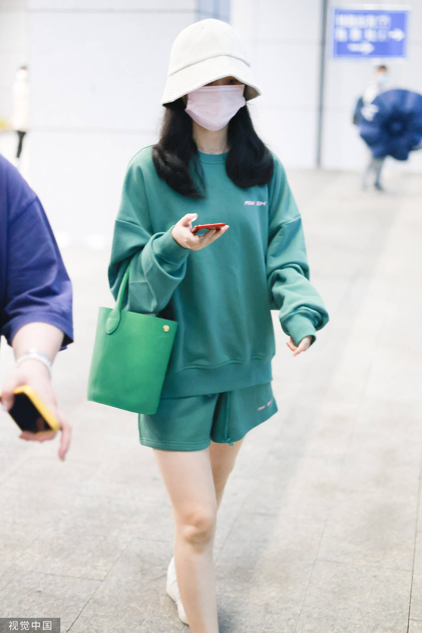 6月5日,趙麗穎現(xiàn)身浙江義烏高鐵站,穿綠色套裝戴漁夫帽,造型清新怡人。