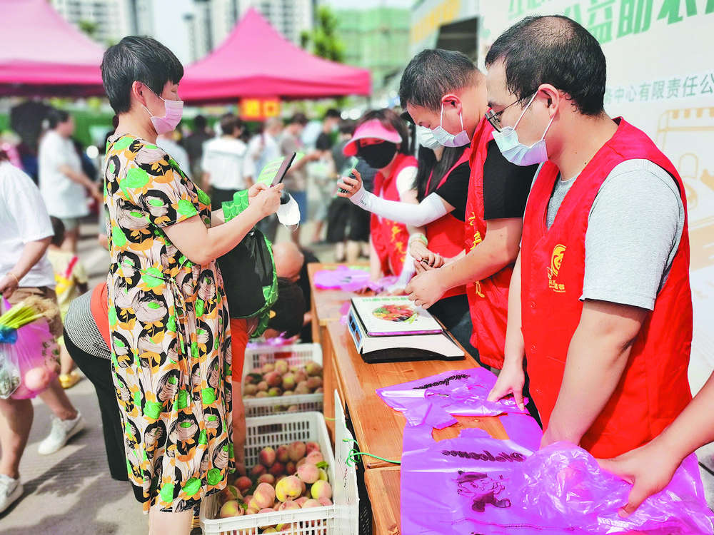 : “賣桃子嘍,剛剛山上摘下的上溪本地桃,新鮮大個(gè)……”6月26日,由義烏市市場(chǎng)開發(fā)服務(wù)中心有限責(zé)任公司總支部委員會(huì)主辦的“紅心向黨 放心菜籃 七一公益助農(nóng)活動(dòng)”在上溪綜合市場(chǎng)舉行。50余名黨員志愿者分成兩組, ...