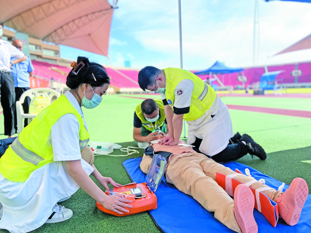 “患者右腿受到撞擊,血流不止……”上午7點(diǎn)半,在體育館足球場外場,醫(yī)療保障人員開展了骨折外傷急救實(shí)戰(zhàn)演練,市急救中心對急救實(shí)操進(jìn)行了打分和點(diǎn)評(píng)。對足球場內(nèi)外場的3組醫(yī)療保障組工作情況進(jìn)行考核后,市急救中心相關(guān)負(fù)責(zé)人表示,醫(yī)療保障人員的反應(yīng)迅速,操作專業(yè),表現(xiàn)良好,現(xiàn)場藥品配備齊全,救護(hù)車待命運(yùn)行情況到位。 據(jù)了解,義烏賽區(qū)承接了第十七屆省運(yùn)動(dòng)會(huì)羽毛球、男子足球、排球三個(gè)項(xiàng)目測試賽及羽毛球、足球、武術(shù)套路及排球等七大項(xiàng)目賽事。賽事期間,我市將抽調(diào)近千人次醫(yī)療保障力量為本屆賽事保駕護(hù)航,負(fù)責(zé)賽場及接待酒店的突發(fā)醫(yī)療應(yīng)急事件的救治工作。 |