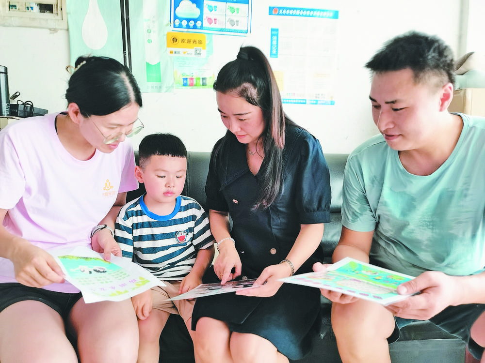 6月30日下午,國(guó)貿(mào)幼兒園老師(左三)上門(mén)為家長(zhǎng)和孩子解讀《防溺水告家長(zhǎng)書(shū)》。 進(jìn)入暑期,國(guó)貿(mào)幼兒園啟動(dòng)“學(xué)生安全千萬(wàn)家”教師家訪(fǎng)活動(dòng)。家訪(fǎng)中,老師們除了向家長(zhǎng)反饋幼兒在園情況,還對(duì)其生活環(huán)境及安全防范進(jìn)行詳細(xì)了解和提醒,排查、了解家庭附近是否有池塘、小河、水庫(kù)等危險(xiǎn)水域,耐心向幼兒、家長(zhǎng)講解防溺水安全知識(shí),督促家長(zhǎng)、監(jiān)護(hù)人增強(qiáng)防范意識(shí),共同構(gòu)筑暑期防溺安全網(wǎng)。 |