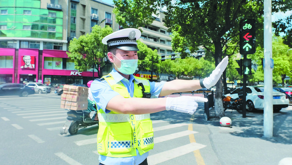 知了發(fā)出的“吱吱”聲越來越響,義烏盛夏的扉頁已然打開。7月7日正值小暑節(jié)氣,下午2點更是一天中最熱的時候,稠州路與貝村路的交叉口,來往車輛川流不息,滾滾熱浪持續(xù)升騰。 “電動車往輔道這邊開,不要占用機動車道行駛!薄邦^盔戴好,注意安全!苯40攝氏度的高溫下,市公安局交警大隊稠江中隊副中隊長柯平身穿短袖制服、戴著白色手套,一刻不停地在路口進行糾違、交通勸導(dǎo)、事故處理。 在一個多小時的時間里,汗水從發(fā)間流下,浸濕了頭發(fā)和帽檐,柯平摘下帽子,用手抹了一把額頭,豆大的汗珠從指尖甩落在地,瞬間蒸發(fā)不見。 “我平時不太容易出汗,可今天這溫度,汗都被蒸出來了。”柯平笑著說。趁著路上車輛少了一點,柯平與隊員小跑至路邊的陰涼處,從車?yán)锬贸龅V泉水,猛地往嘴里灌,礦泉水瓶一會兒就見底了。 此時,一輛停在店門前停車位上的小轎車正在倒車,說時遲那時快,小轎車方向一轉(zhuǎn),刮擦了停在右側(cè)的另一輛車!巴R幌,你把別人的車刮了,先下車!弊鳛榻痪目缕,見證了這起事故的全過程。還沒休息幾分鐘,柯平又一頭扎入烈日下,開始處理這起交通事故。 聯(lián)系另一位車主,協(xié)調(diào)雙方賠償事宜,普及線上“一鍵報警”功能……在交警崗位上工作了10年,柯平已積累了豐富的交通事故處理經(jīng)驗。除了早晚高峰時段要去路面糾違、交通勸導(dǎo)、維持秩序外,柯平最主要的工作就是處理交通事故。據(jù)統(tǒng)計,稠江交警中隊轄區(qū)的事故量平均每天達90多起,主要集中在新科路、貝村路、戚繼光路、經(jīng)發(fā)大道等路段。忙的時候,柯平一天就要處理事故40多起。 “有時候一出警就要半天,處理事故時在太陽底下曬個把小時也是常事!笨缕秸f。檢查事故車輛情況時,車身鐵皮在太陽的炙烤下溫度直線上升,哪怕只站在旁邊都會燙得讓人避之不及,但常年處理交通事故的柯平早已習(xí)慣了。 |