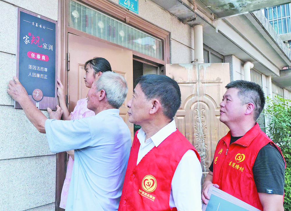7月12日,廿三里街道東蓮塘村村民任恭良家門口,在“共產(chǎn)黨員戶”“光榮之家”的金色牌子旁邊,又多了一塊“家規(guī)家訓(xùn)”牌,上面寫著“蓮因潔而尊,人因廉而正”。 任恭良是一位有著50年黨齡的老黨員。“我們村以蓮塘為名,我們也都是在蓮塘邊長大的,做人做事也該像荷花一樣‘出淤泥而不染,濯清漣而不妖’!彼f,這兩句話一直是他做事的鏡子、持家的尺子。廿三里街道工作人員和村兩委志愿者上門掛牌的時(shí)候,任恭良還特地喊來10歲的孫女,讓她一同參與家規(guī)家訓(xùn)上墻。 記者走進(jìn)東蓮塘村,只見新房矗立,黨員、村兩委干部家的門前都掛上了正正方方的“家規(guī)家訓(xùn)”牌。牌上的字句,樸實(shí)無華,講述著每戶家庭奉行的處世之道。據(jù)悉,這些家規(guī)家訓(xùn),是該村村兩委通過幾次黨員主題活動(dòng)日征集到的,展現(xiàn)了村里的正能量和凝聚力。 近年來,東蓮塘村先后獲得“義烏市級(jí)文明村”“義烏市小康體育村”“義烏市綠化示范村”“金華市民主法治村”等榮譽(yù)。“家門口掛上家規(guī)家訓(xùn)牌,把字句看在眼里、記在心里,讓淳樸和諧的好家風(fēng)、好民風(fēng)付諸行動(dòng),一直傳承下去!贝迕袢魏榱琳f。 “班子清廉、干部清正、村務(wù)清爽、村風(fēng)清朗,是東蓮塘村從古到今傳承下來的,也是我們村欣欣向榮的堅(jiān)實(shí)基礎(chǔ)!闭f起東蓮塘村良好的民風(fēng)、繁榮的發(fā)展,村黨支部書記任春茂十分驕傲,“我們村成立了議事小組,讓那些喜歡提意見善于提意見的、不同年齡層、不同家庭條件的熱心村民都加入到小組,說一說、議一議村里的大小問題,幫助村兩委更全面、細(xì)致地考慮問題。如此形成良性循環(huán)之后,許多農(nóng)村發(fā)展過程中的難題都能迎刃而解。如在全域土地綜合整治過程中,不少土地上都種了菜。種的少的村民自發(fā)提前處理,種得多的大家搶著購買,順利推進(jìn)了土地整治! 清廉村居是清廉富民建設(shè)的重要組成部分,是村民幸福生活的重要保障,也是共同富裕的清廉基礎(chǔ)!凹绎L(fēng)相連成民風(fēng)。結(jié)合‘廉潔家風(fēng)進(jìn)萬家’活動(dòng),街道推進(jìn)家規(guī)家訓(xùn)上墻,讓年輕人更直觀感受父輩的付出,進(jìn)而讓優(yōu)良的家風(fēng)家訓(xùn)得以弘揚(yáng)傳承,助力共同富裕!必ト锝值老嚓P(guān)負(fù)責(zé)人表示,街道紀(jì)工委還聯(lián)合婦聯(lián),開展形式多樣的清廉建設(shè)活動(dòng),在轄區(qū)內(nèi)形成良好氛圍。通過收集廿三里本地廉潔故事、文明故事,建設(shè)廉政主題公園,用身邊的人和事教育身邊的人,弘揚(yáng)真理、傳播正能量;陸續(xù)推進(jìn)李宅、后樂等村莊“家規(guī)家訓(xùn)”上墻工作,助力清廉村居示范村建設(shè)等一系列活動(dòng),讓好家風(fēng)、好民風(fēng)內(nèi)化于心、外化于行。 |