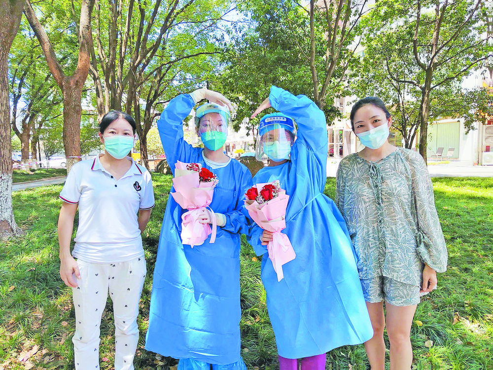 8月4日是七夕,這一天,繡湖社區(qū)黨群同心“疫”路同行,過了一個(gè)別樣的七夕。 一大早,都市公寓的金夏娟、宗穎俐、王桂香等幾位居民忙了起來。從鮮花的挑選、修剪到包裝,每個(gè)程序都一絲不茍,要將最美的鮮花送給最可愛的一線抗疫“戰(zhàn)士”!斑@么熱的天做核酸檢測(cè),一線醫(yī)護(hù)人員真的非常辛苦,送她們一束鮮花表表心意,也算是一個(gè)小小的節(jié)日驚喜吧!”金夏娟笑著說。 對(duì)于這波撲面而來的節(jié)日“儀式感”,在崗的醫(yī)護(hù)人員很意外,也很感動(dòng)!白鳛獒t(yī)護(hù)工作者,疫情面前理應(yīng)沖在第一線,苦點(diǎn)累點(diǎn)也都是應(yīng)該的,繡湖的居民真的有心了!眲倧暮怂岵蓸狱c(diǎn)換崗下來的姑娘們,伸手接過迎面而來的鮮花,滿是汗水的臉上綻放出開心的笑容。 除了醫(yī)護(hù)工作人員外,繡湖社區(qū)核酸檢測(cè)現(xiàn)場(chǎng)的所有志愿者和基層一線工作者,也收到了小區(qū)居民的這份“浪漫”。 |