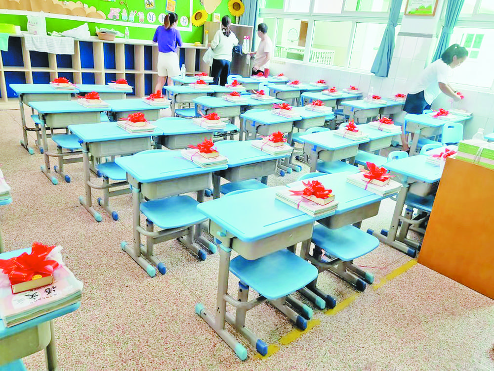 假期里,實驗小學(xué)開展了暑假德育特色實踐活動,強(qiáng)化學(xué)生體育鍛煉,增強(qiáng)美育熏陶,加強(qiáng)勞動教育。開學(xué)后,學(xué)生們會把自己在暑假里做的手工作品、繪畫作品、手抄報等帶到學(xué)校,扮靚教室。 “我們要用整潔的校園來迎接孩子們‘回家’!睂嶒炐W(xué)老師說,家長和孩子們都很熱心,打掃衛(wèi)生、分發(fā)書本、澆灌綠植、書寫黑板報,積極參加扮靚教室的活動。 8月30日,佛堂三小的老師們親手為孩子們準(zhǔn)備了“旺仔牛奶花束”,鼓勵學(xué)生在新的學(xué)年樂觀堅強(qiáng),積極向上,做最好的自己。該校還制作了“升學(xué)車票”,寄語每一位學(xué)生珍惜時光,整裝奔赴新征程。 在廿三里初中,老師們早早地布置好窗明幾凈的教室,備好新書,等候孩子們回校。毛店小學(xué)的開學(xué)禮準(zhǔn)備了一本《這樣愛你剛剛好》送給廣大家長,倡議親子閱讀,和孩子共成長。 |