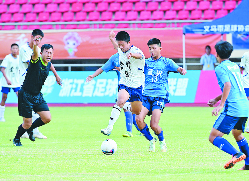 省運會男足(乙組)首輪比賽,金華隊(白色球衣)6:0大勝嘉興隊 昨日上午,省運會男子足球(乙組)的比賽在義烏市梅湖體育中心開賽,共有來自全省各地的10支球隊、230名運動員參賽。比賽將持續(xù)至9月27日,共計產(chǎn)生12枚金牌。開賽首日進行了4場比賽,在A組第一輪較量中,杭州隊以7:1大勝紹興隊,溫州隊以3:0戰(zhàn)勝衢州隊。在B組第一輪較量中,金華隊以6:0大勝嘉興隊,臺州隊以2:3不敵麗水隊。 賽場上,金華足球(乙組)隊表現(xiàn)搶眼。開賽后,雙方進入激烈拼搶,各自在對方球門前組織了多次進攻。至第23分鐘,金華隊以頭球攻入首球,打開局面。隨后,金華隊乘勝追擊,加強傳控,4分鐘后又利用禁區(qū)內的一腳補射,將比分擴大至2:0。下半場比賽開始,金華隊開始接連換人,利用自身的優(yōu)勢阻斷了嘉興隊的數(shù)次進攻,牢牢掌握著場上的主動權。替補上場的3名球員表現(xiàn)不俗,開賽后10分鐘內,在禁區(qū)內踢進2球。至比賽結束,又攻入2球。比分最終鎖定在6:0,金華隊取得“開門紅”。 金華足球(乙組)隊擁有多名高水平球員,實力不容小覷。在近兩年的省青少年足球錦標賽上,先后獲得季軍和亞軍;去年省青少年足球冠軍賽中,球隊成功奪得冠軍!2019年,我們?yōu)閭鋺?zhàn)省運會組建了這支隊伍,參與集訓的球員最多時有50多人。經(jīng)過優(yōu)中選優(yōu),最終20名優(yōu)秀球員脫穎而出,代表金華參加這次省運會!鼻蜿犞斫叹殢堬j說。 |