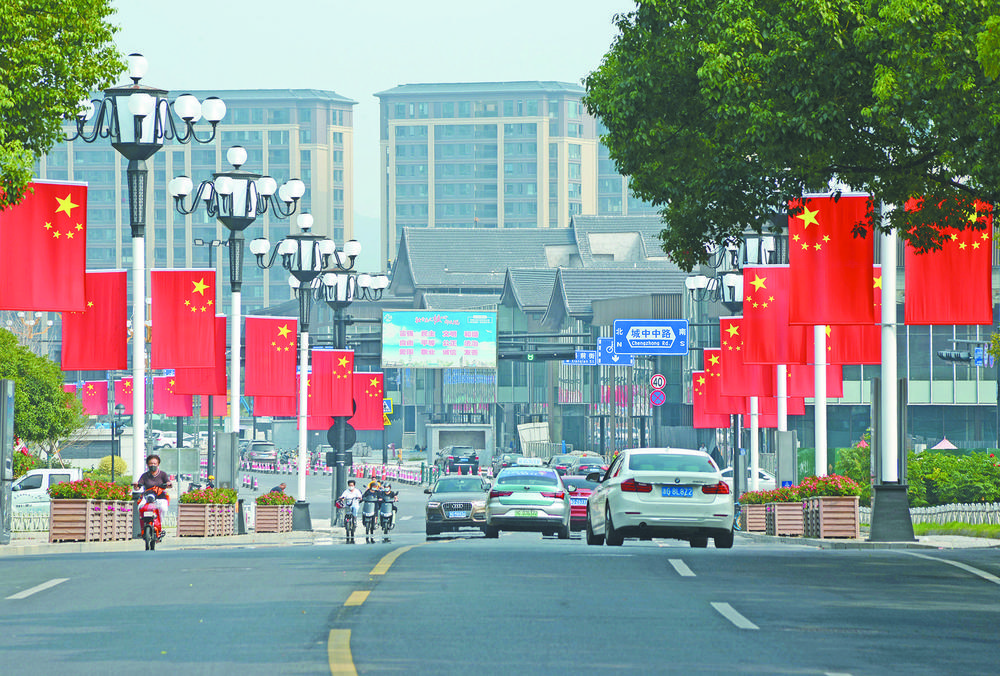 : 國(guó)慶節(jié)即將來(lái)臨,在商城義烏的大街小巷,“中國(guó)紅”洋溢著節(jié)日的喜慶氛圍。在縣前街、廣場(chǎng)路、新馬路、機(jī)場(chǎng)路等14條城市主干道,不少游客在此與國(guó)旗“打卡”拍照。在滿目“中國(guó)紅”的映襯下,市民和游客獻(xiàn)上對(duì)祖國(guó)最 ...