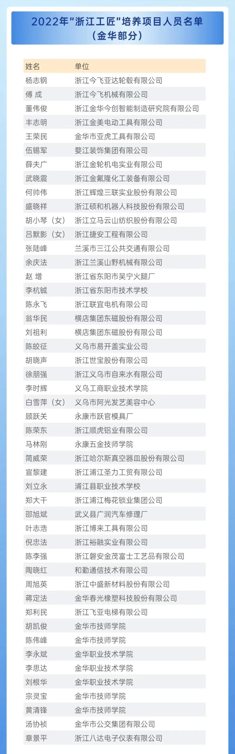 | 近日,浙江省人社廳、省總工會公布2022年“浙江工匠”培養(yǎng)項目人員名單,其中義烏7人入選,分別為陳皎征、胡曉聲、徐朋強、李時輝、白雪萍、朱文波、孫傳。截至目前,義烏已有浙江大工匠1名、浙江杰出工匠1名、浙江工匠13名、浙江青年工匠20名。