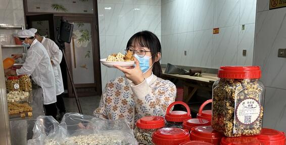 村道邊,麻糖手工作坊林立,一家挨著一家,不少慕名而來(lái)的游客兩手提著麻糖而歸。拐進(jìn)一家店內(nèi),一對(duì)夫妻分工協(xié)作,熬紅糖、壓麻糖、切麻糖、裝麻糖,每一道工序都極其熟練。這位師傅名叫李自安,今年60歲,做麻糖已40余年。一大口鍋,不停冒泡,氤氳熱氣,李自安不時(shí)攪拌著,“每年農(nóng)歷九月十五開始到過(guò)年,我們都會(huì)做麻糖,農(nóng)歷十一月到十二月是旺季,忙的時(shí)候一天做四五鍋! 熬糖、選料、炒拌均勻后,李自安便將麻糖交給妻子陳姚平壓平切片,隨著“篤篤”的聲響,色澤光亮、香甜松脆的麻糖基本完成了。 “堅(jiān)守初心,才能留住客戶!标愐ζ礁嬖V記者,今年麻糖的原材料價(jià)格有所上漲,但他們依然堅(jiān)持價(jià)格十幾年保持不變,薄利多銷。 “前兩天來(lái)買,朋友覺(jué)得味道很好,又托我來(lái)回購(gòu)幾箱”“老板娘,我定1200箱,什么時(shí)候能做好寄過(guò)來(lái)”“每到這個(gè)季節(jié),身在他鄉(xiāng)就饞一這口家鄉(xiāng)味道”……講誠(chéng)信、重品質(zhì)、懂創(chuàng)新、平價(jià)格,回頭客一批接著一批。近年來(lái),李宅的麻糖已成規(guī)模,制作售賣麻糖的加工作坊達(dá)13家,年總產(chǎn)值高達(dá)五六百萬(wàn)元。 “家人們,上午好,我是‘廿青春’主播舒婷,今天……”廿三里街道思源社區(qū)青年委員任舒婷化身主播,舉著自拍桿,正對(duì)著直播鏡頭向大家推薦李宅麻糖。剛歇下來(lái)的李自安靦腆地向鏡頭打了招呼,“我們今年新推出了沙琪瑪、紅薯絲、薏米、菠蘿蜜等口味,歡迎大家來(lái)訂購(gòu)!必浖苌,不同口味的麻糖整齊擺放著。 任舒婷介紹,為聚合青春力量助力鄉(xiāng)村振興,“廿青春”因地制宜做好“特”字文章,組織開展農(nóng)特產(chǎn)品直播推介,本次試播反響不錯(cuò),接下來(lái)將繼續(xù)走進(jìn)更多村社。 此外,位于李宅的“廿家”直播基地預(yù)計(jì)11月中旬完工。屆時(shí),線上銷售將讓李宅麻糖插上“云翅膀”,以數(shù)字賦能幫助農(nóng)戶拓寬銷路,助力鄉(xiāng)村共富。 |