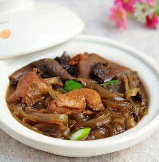8、加入鹽調(diào)味,再加入粉條燉至粉條發(fā)軟;