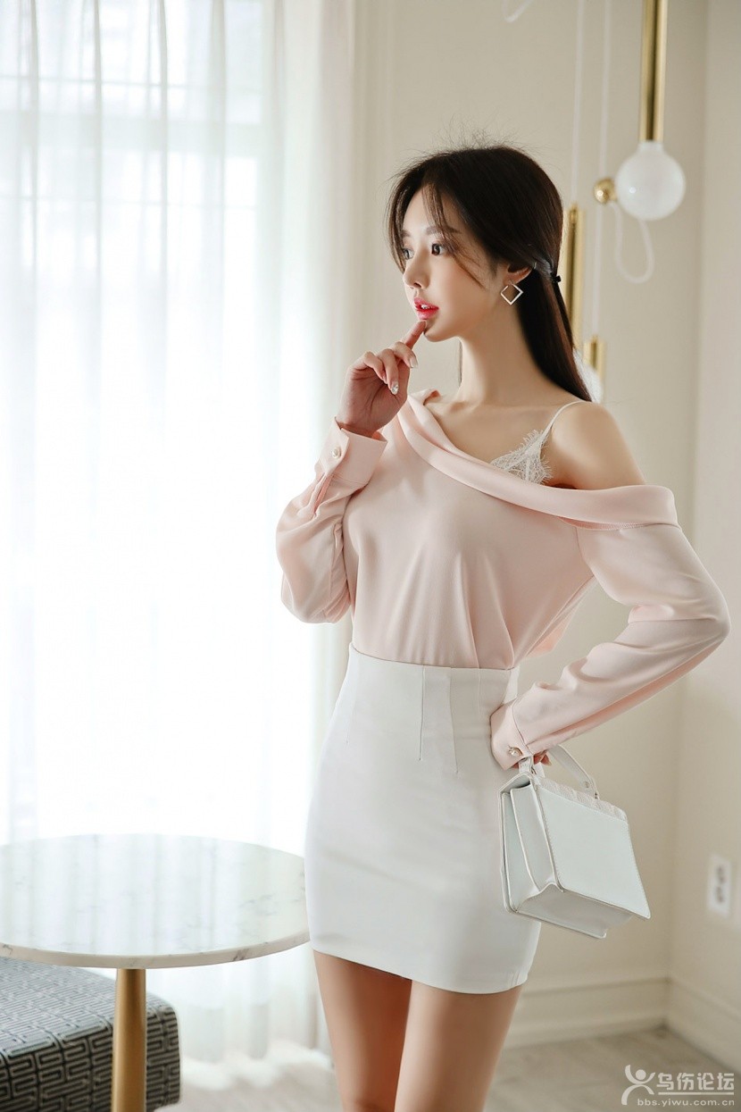 白色短裙粉色上衣身材很好的女子