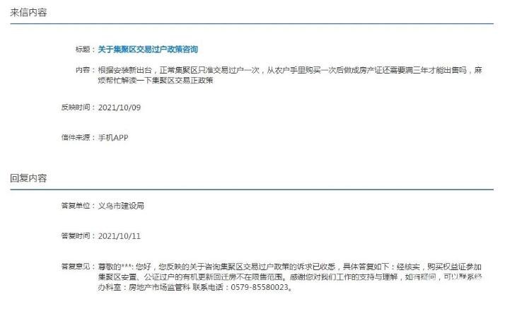 日前,有市民在浙江統(tǒng)一政務(wù)咨詢平臺詢問:關(guān)于集聚區(qū)交易過戶政策,正常集聚區(qū)只準(zhǔn)交易過戶一次,從農(nóng)戶手里購買一次后做成房產(chǎn)證還需要滿三年才能出售嗎?麻煩幫忙解讀一下集聚區(qū)交易正政策。 義烏市建設(shè)局10月 ...
